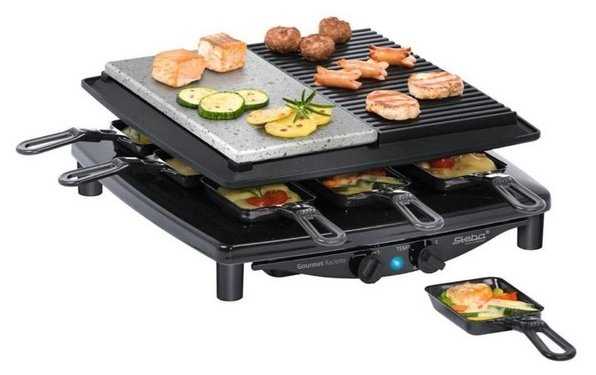 - + Очень качественная раклетница. Сменная каменная плита и рефлёная тефлоновая часть позволяют комбинировать приготовку еды, особенно мяса.