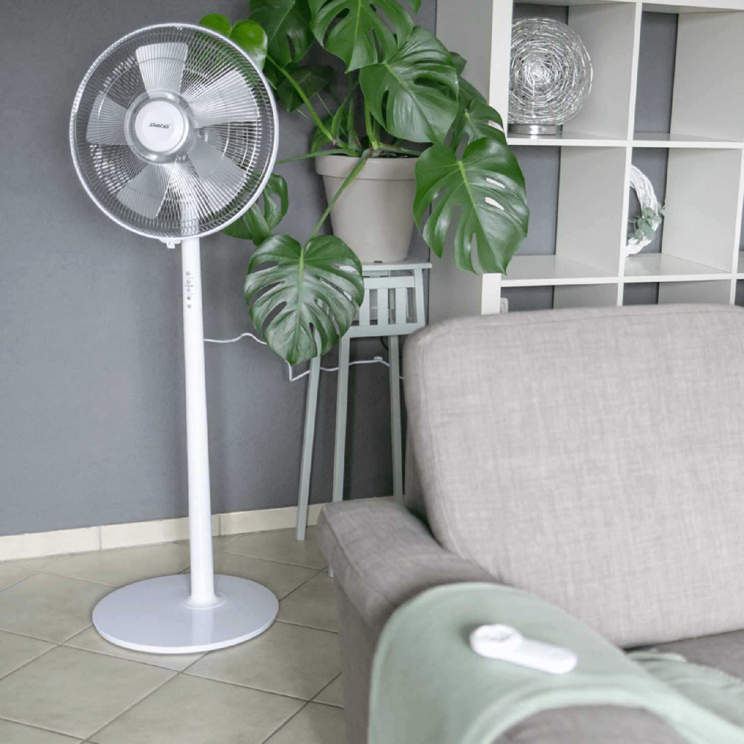 - + Есть необычные режимы работы (если задать соответствующий режим, в процессе работы скорость вентилятора может изменяться). Переключение на горизонтальное вращение осуществляется электронно (кнопка на стойке или пульт),