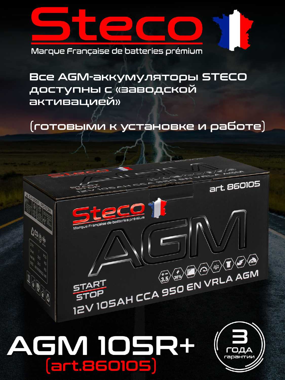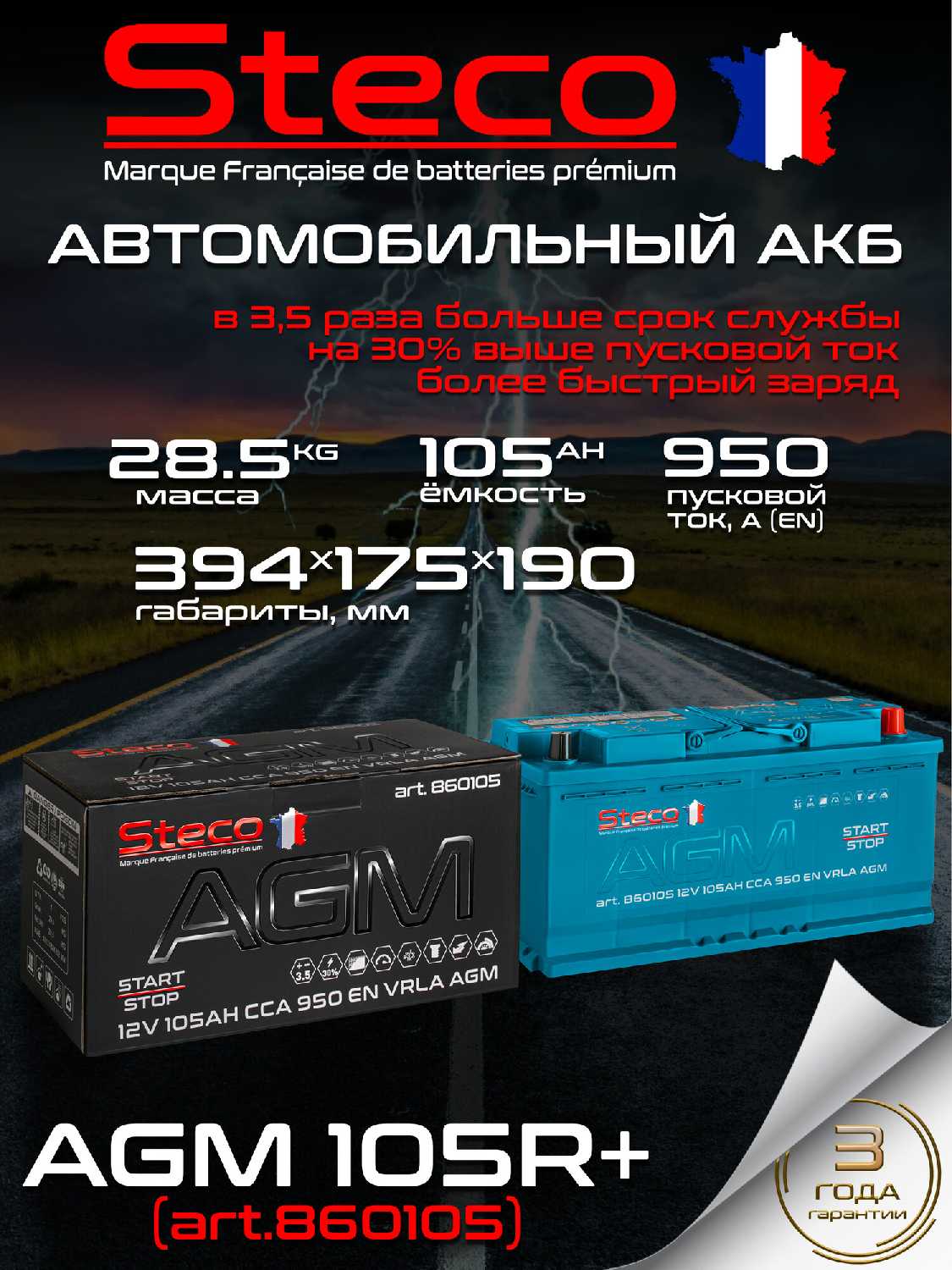 Отзывы о Автомобильный аккумулятор STECO AGM 105R+ (806105)
