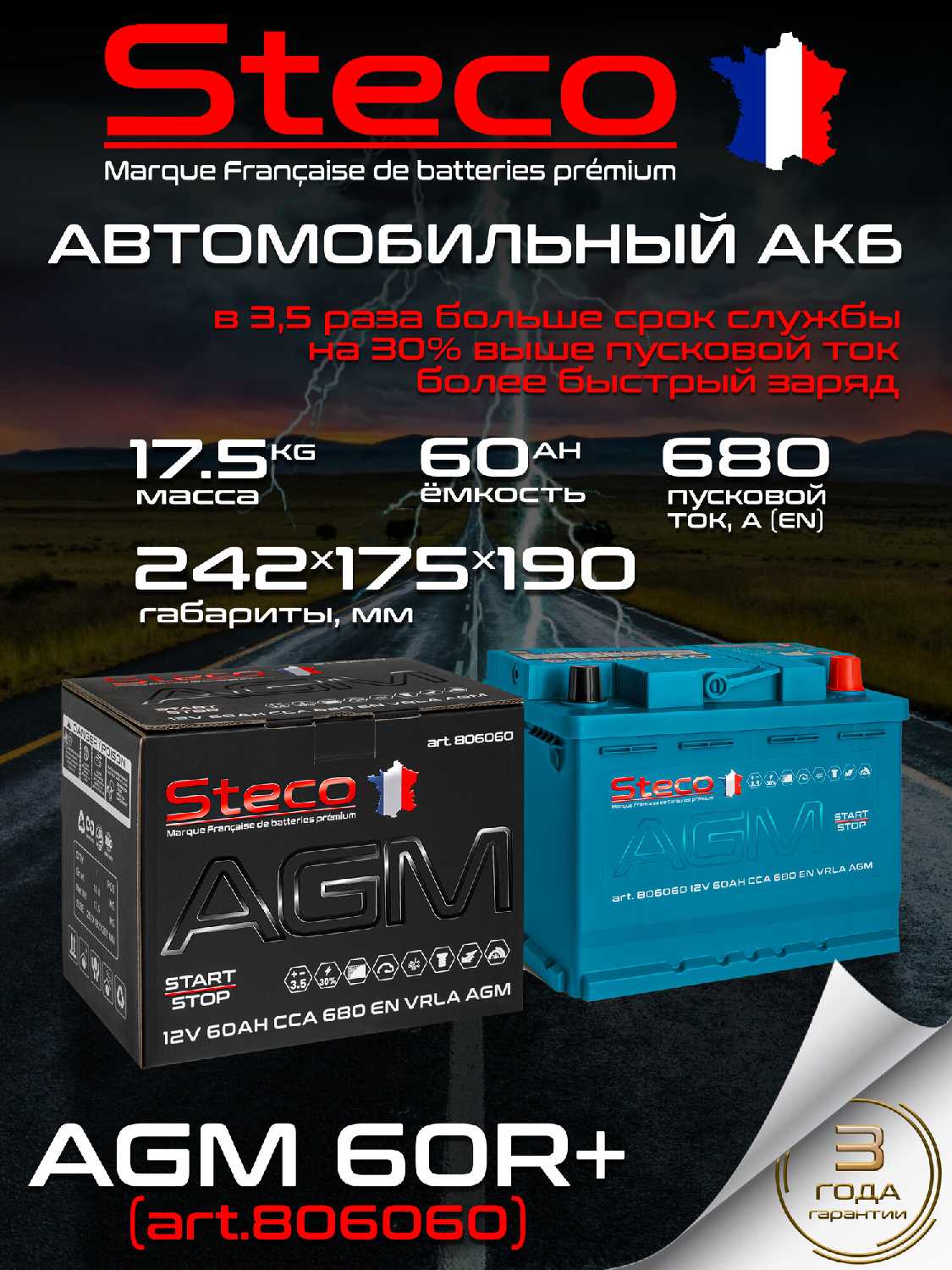 Характеристи STECO AGM 60R+ (806060)