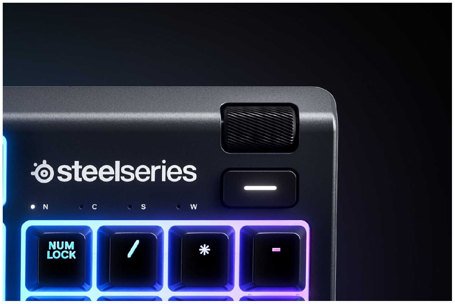- 10-зонная RGB-подсветка с яркостью до 500 кд/м² настраивается через SteelSeries GG: создаются статические схемы, аудиовизуализации, игровые профили.