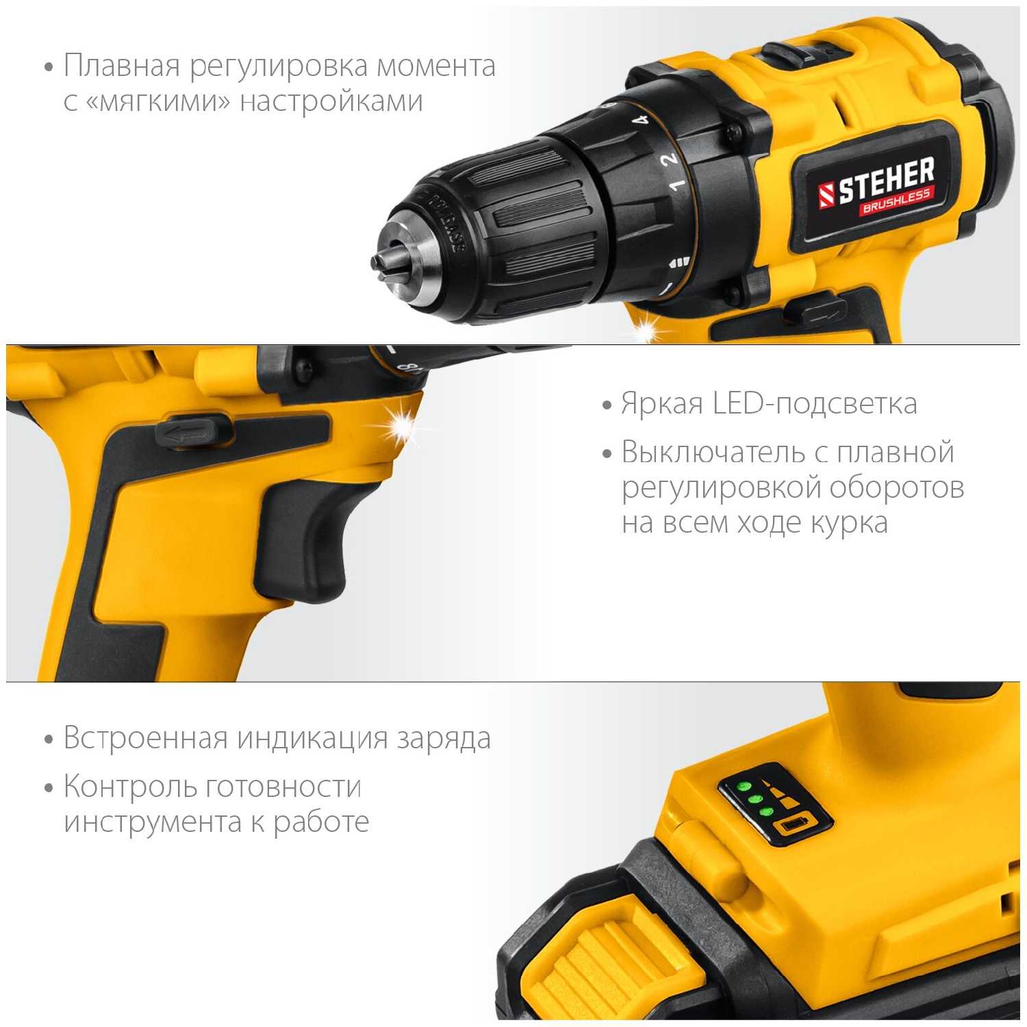 8 отзывов пользователей o Steher Дрель-шуруповерт STEHER CDB-200-1