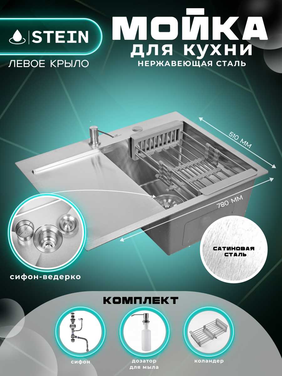 Лучшие цены сегодня на STEIN Мойка 78х51 с левым крылом [ST37851-R/031]