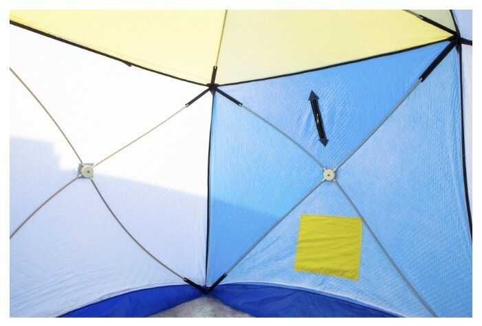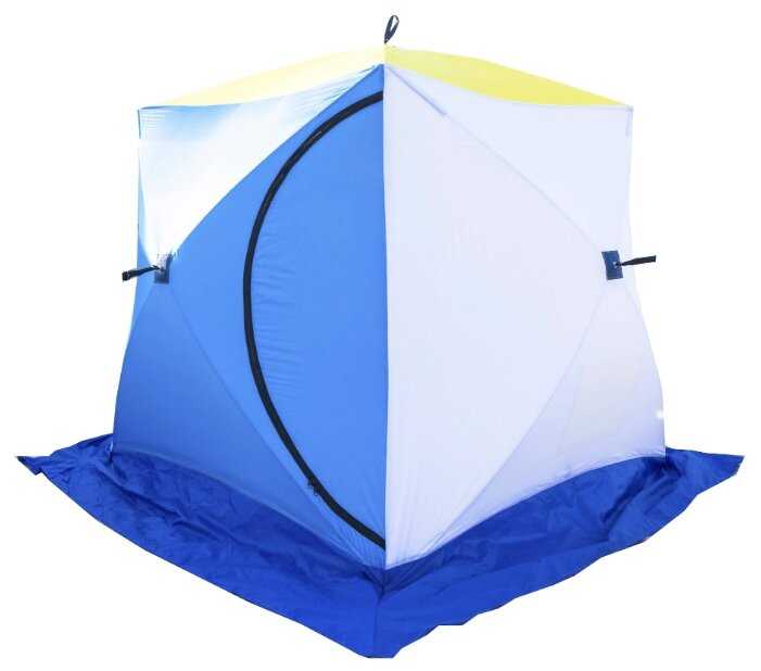 - + трёхслойная палатка с юбкой, один вход, есть чехол. Тепло держит. Фирма СТЭК, как и заявлено