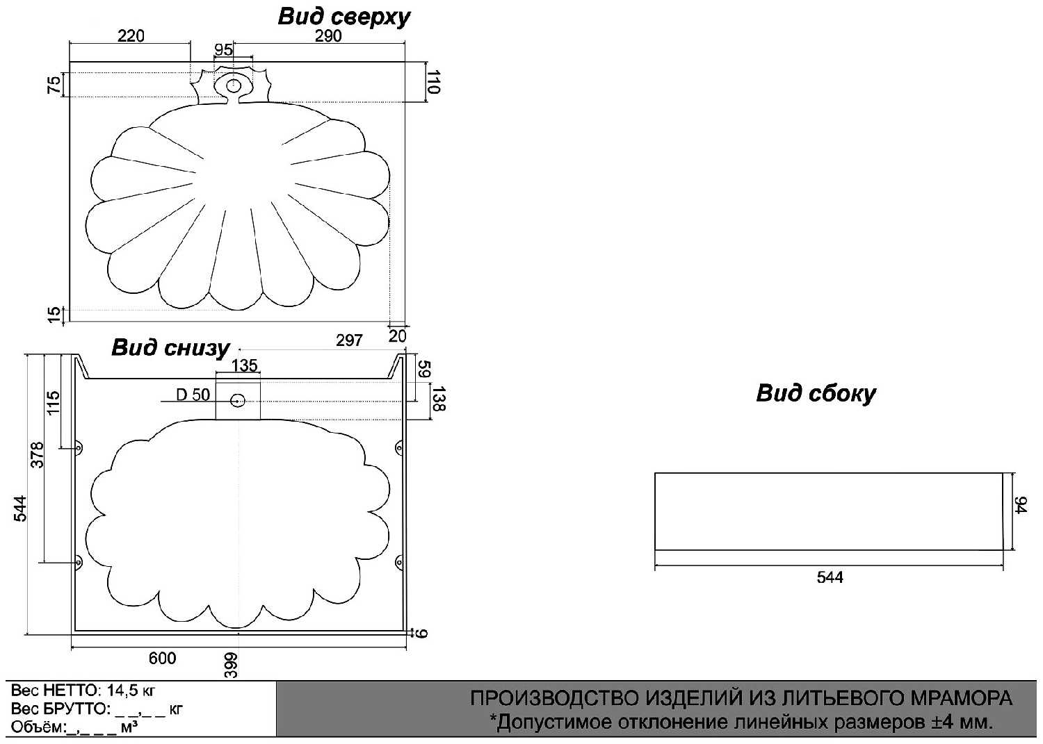 | Расположение размеченного отверстия под смеситель : | опционально |