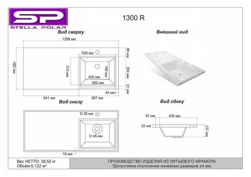 | Материал : | искусственный мрамор |