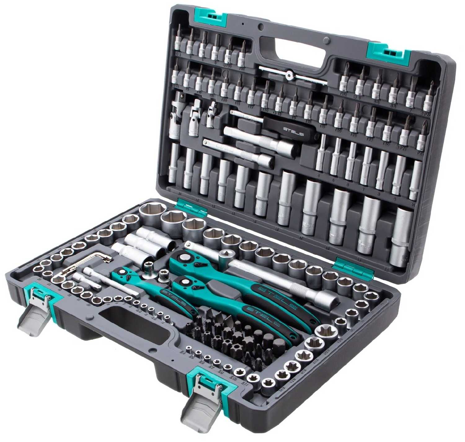 Отзывы о Набор инструментов, 1/4", 3/8", 1/2", Cr-V, S2, усиленный кейс, 151 предм., Stels