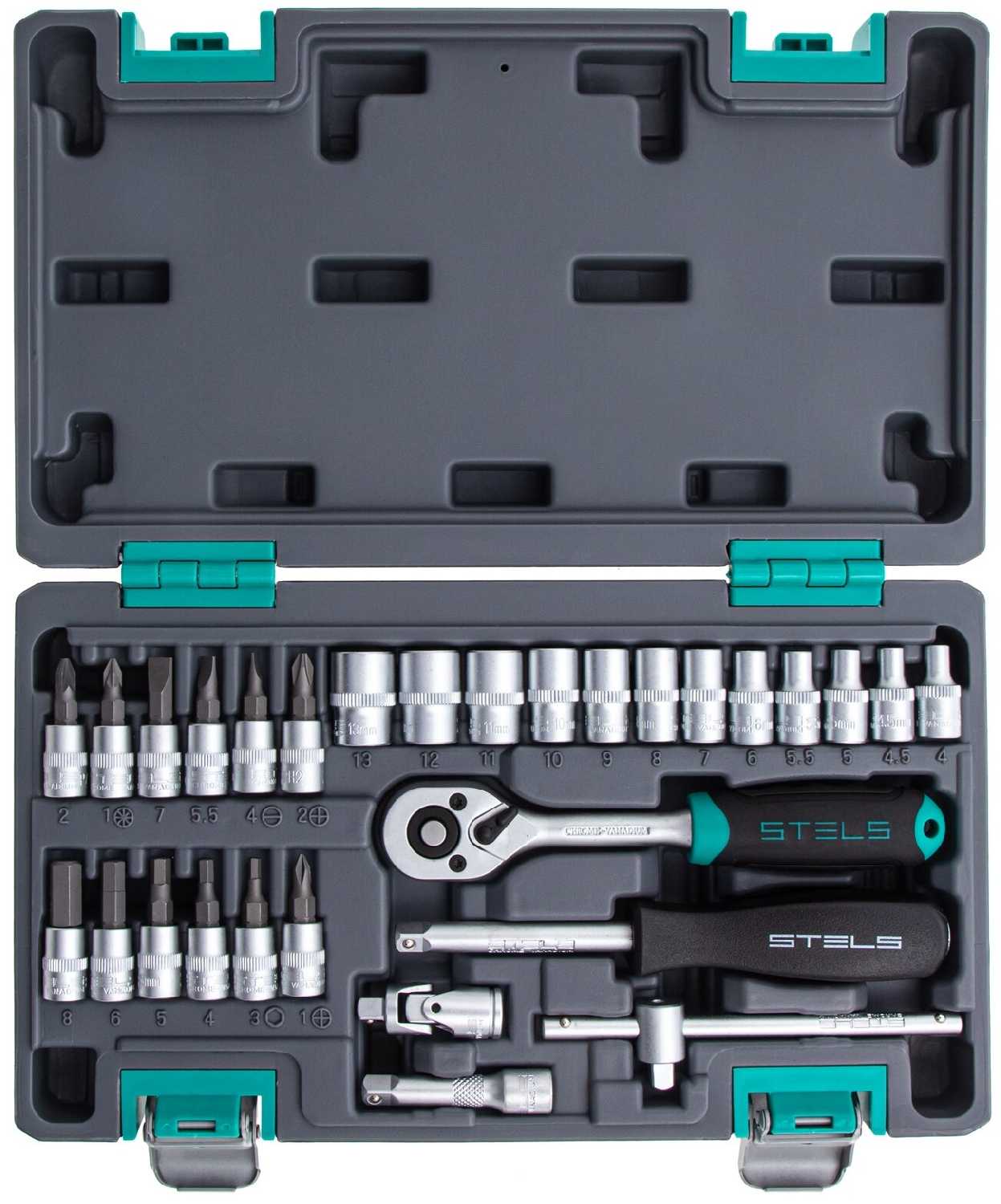 Купил для подтяжки гаек в трудно доступных местах. Работу свою набор выполняет на отлично. Удобный кейс для переноски. Комплектные головки в отделах кейса держаться хорошо.