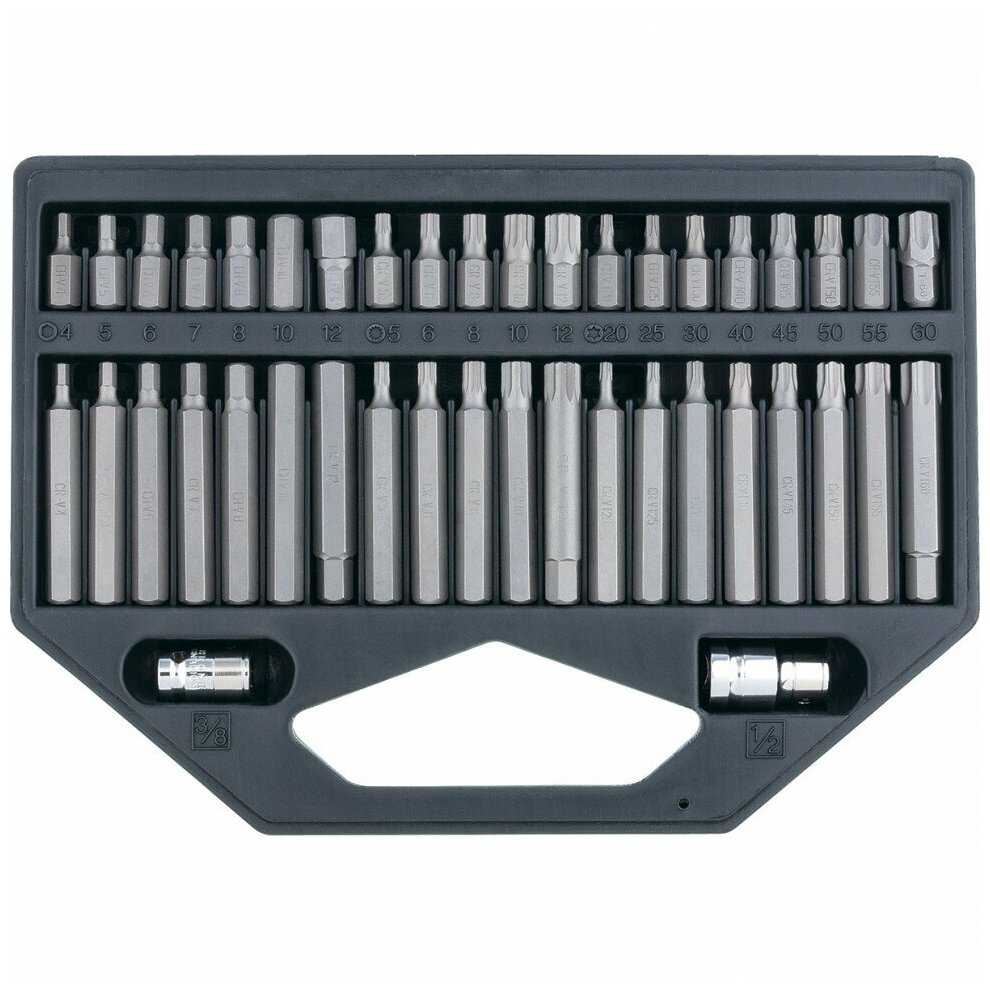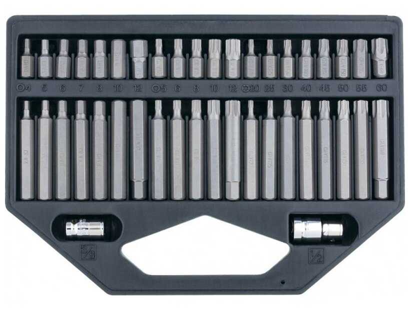 | Биты подробно : | Биты: Н4х30 мм Н5х30 мм Н6х30 мм Н7х30 мм Н8х30 мм Н10х30 мм Н12х30 мм Н4х75 мм Н5х75 мм Н6х75 мм Н7х75 мм Н8х75 мм Н10х75 мм Н12х75 мм М5х30 мм М6х30 мм М8х30 мм М10х30 мм М12х30 мм М5х75 мм М6х75 мм М8х75 мм М10х75 мм М12х75 мм T20x30 мм Т25х30 мм Т30х30 мм Т40х30 мм Т45х40 мм Т50х30 мм Т55х30 мм Т60х30 мм T20x75 мм Т25х75 мм Т30х75 мм Т40х75 мм Т45х75 мм Т50х75 мм Т55х75 мм Т60х30 мм - 40 шт, переходник для трещотки 1/2" - 1 шт, переходник для трещотки 3/8" - 1 шт |