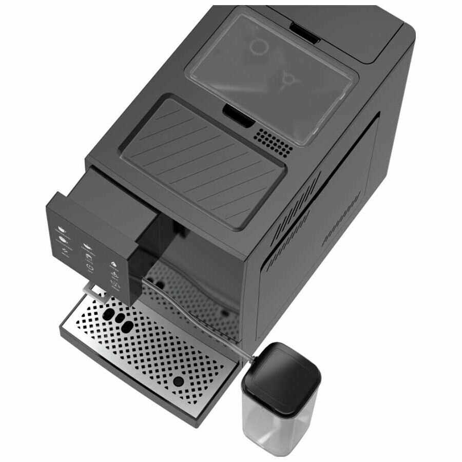 - Автоматический подсчет порций напоминает о необходимости очистки бункера отработанного кофе.