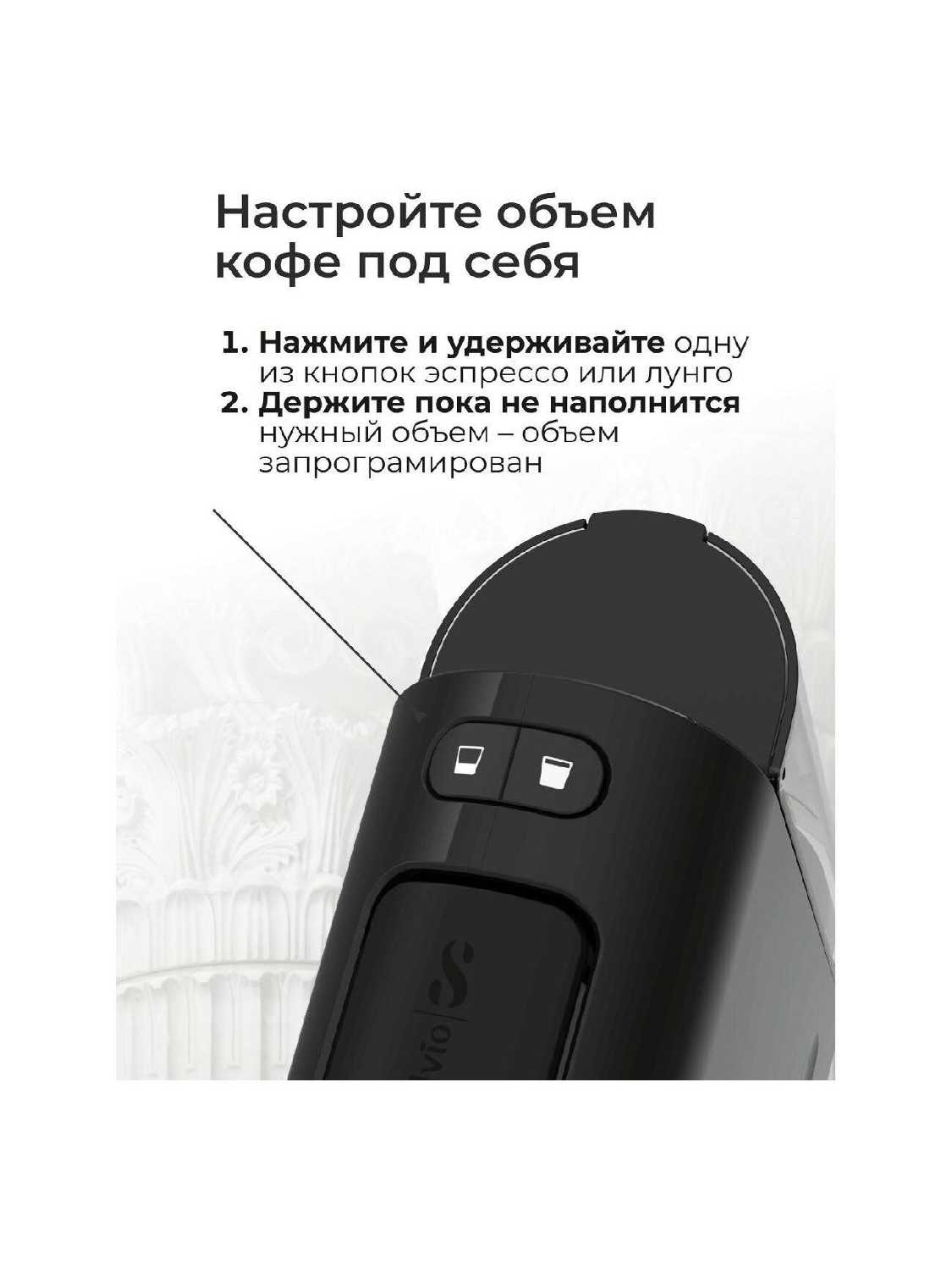 - Можно выбирать объем воды для эспрессо, лунго или ристретто, настраивать под чашку.