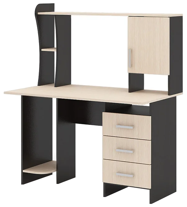 - + Отличный стол! Вместительный. Занимает немного места, но влезает в него достаточно, я не любитель открытых полок у мебели. Предпочитаю, чтобы все закрывалось. У этого стола все как надо. Две маленькие открытые ниши для мелочевки, которая может пригодиться. Верхняя полка для колонок и принтера, например. Остальное все закрыто. Все выглядит аккуратно.