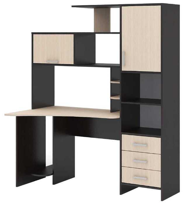 - Много полок, ящиков и шкафчиков для хранения книг, ноутбука, МФУ и других вещей, что удобно для рабочего пространства или учебы.