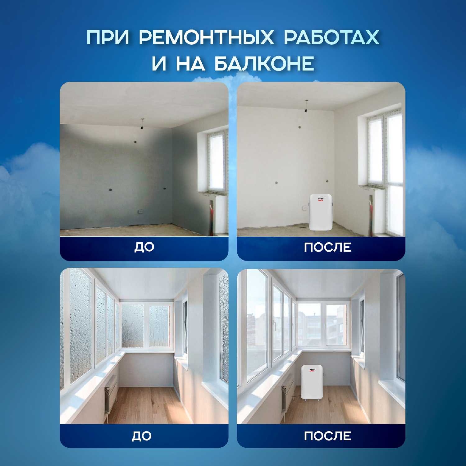 Во время ремонтных работ осушитель значительно ускоряет процесс высыхания штукатурки и других отделочных материалов. Пользователи успешно применяют его для просушки помещений после flooding или тушения пожара. Устройство демонстрирует эффективность при осушении building конструкций в новых деревянных домах после завершения строительства. Это делает его незаменимым помощником на различных этапах ремонтно-строительных работ. -