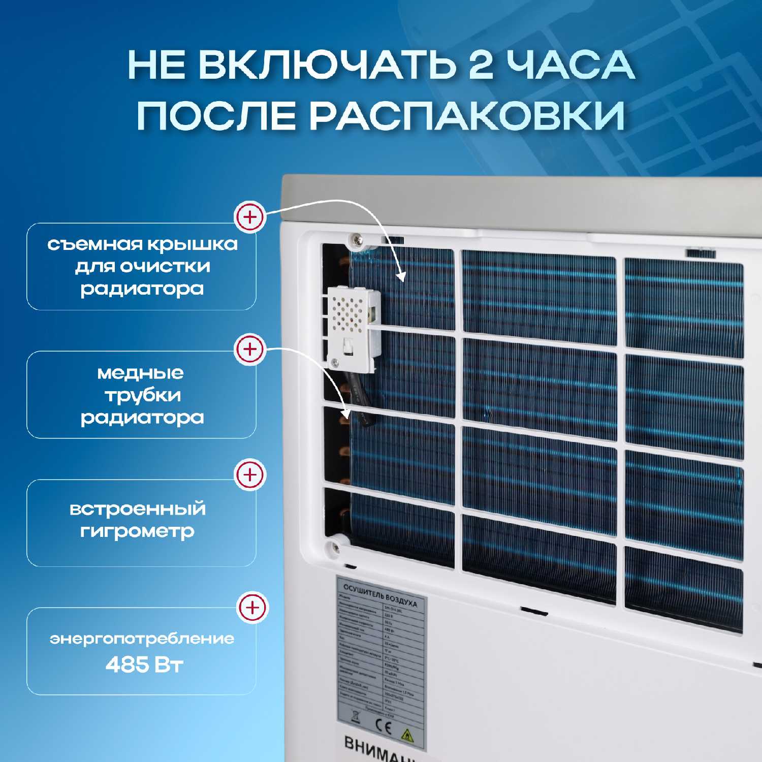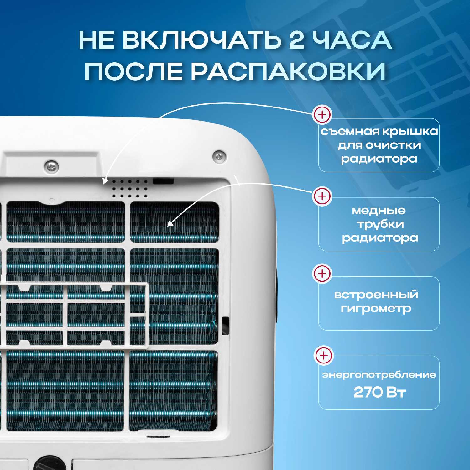 - Собирает до 3 литров воды за 12 часов в условиях повышенной влажности, предотвращая конденсат на окнах и сырость в углах.