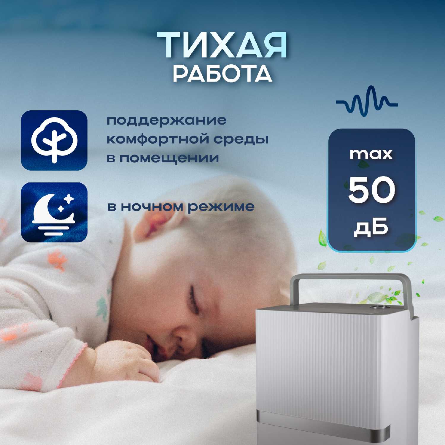 - Ночной режим снижает шум до приемлемого уровня, позволяя использовать устройство в спальне без дискомфорта.