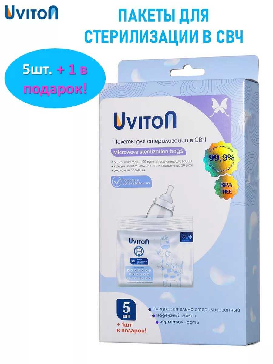 6.3/10 баллов 6.3/10 балловUviton Пакеты для стерилизации бутылочек (5 шт)Характеристики:- цвет товара: белый