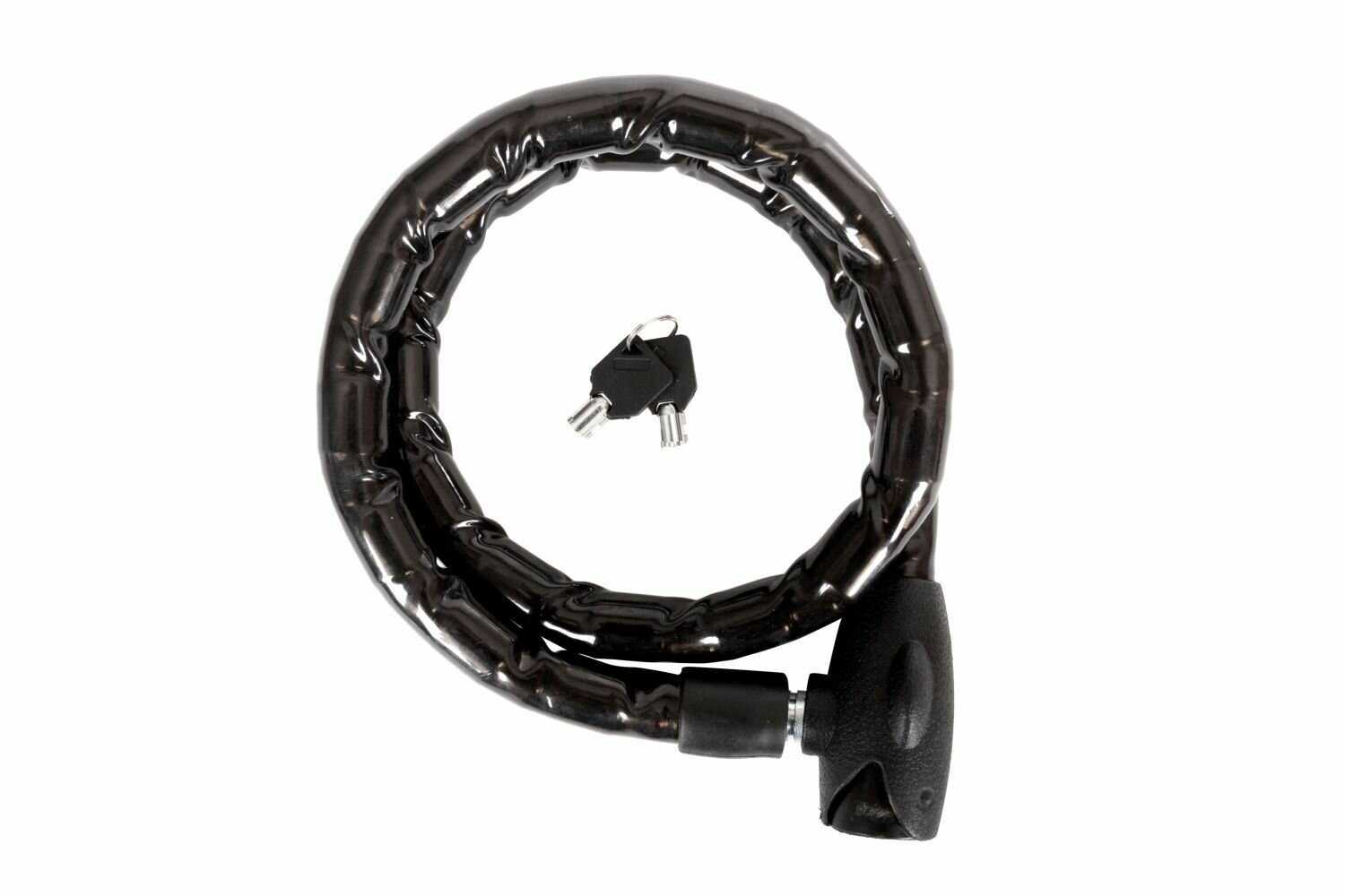 - + Увесистый, мощный, сделан из металла, прочная оболочка вокруг замка и цепи.