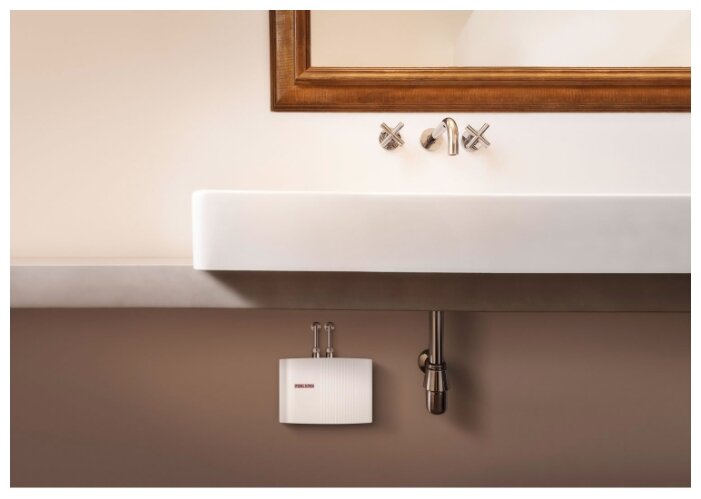 Очень стильно смотрится, компактный и аккуратный. Поставили его над раковиной, смотрится он не громоздко, а очень современно. Вода нагревается быстро, сразу как включается кран, даже сливать не приходится. Вода идет достаточно горячая, рука не терпит, разбавлять приходится обязательно. По расходу электричества довольно экономный. Температура регулируется напором воды – чем выше напор, тем меньше температура. Это очень удобно, особенно когда посуду моешь.