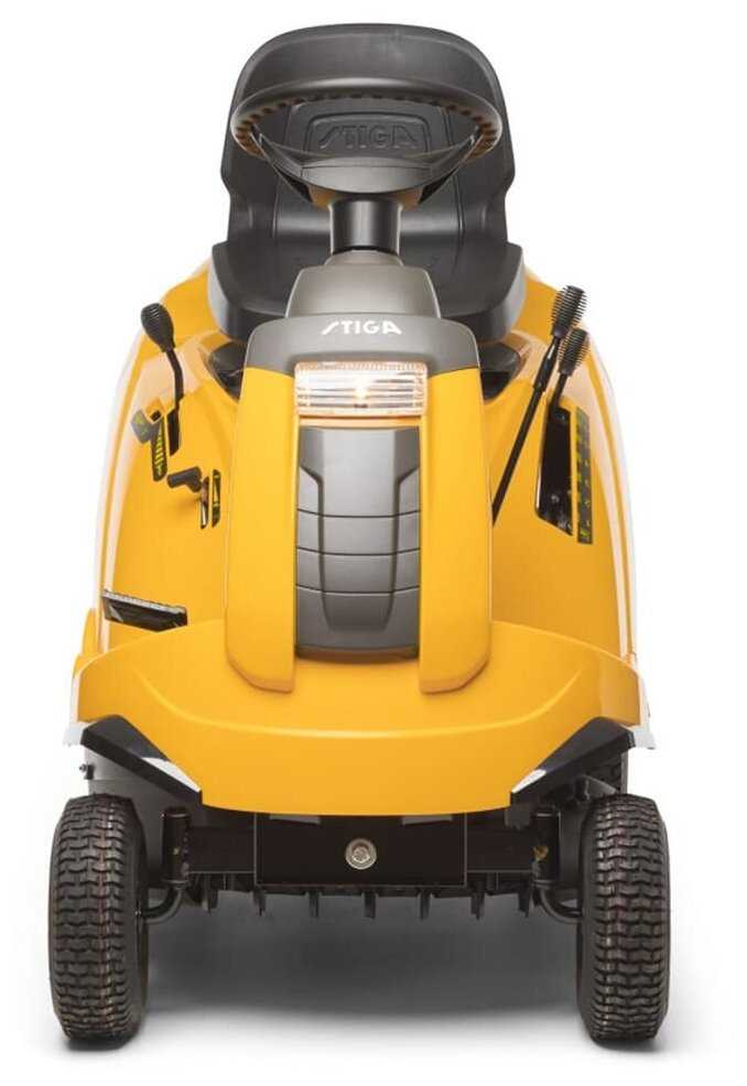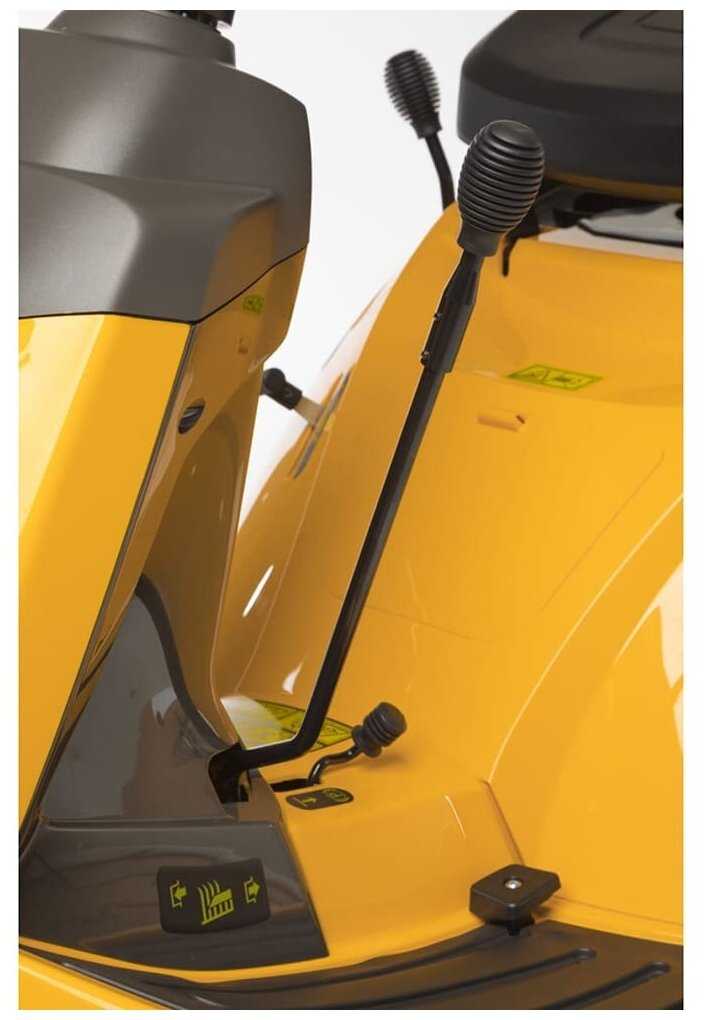 боковой выброс травы, возможность установки мульчирующей насадки, задний выброс травы, регулировка сиденья, травосборник, электростартер