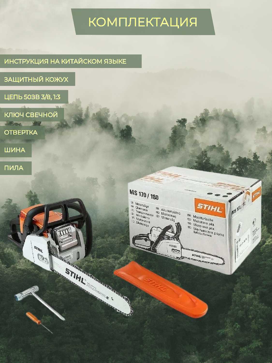 Пришла шина на 40, а не 35, как в описании. В наличии комплект для ручной заточки цепи.