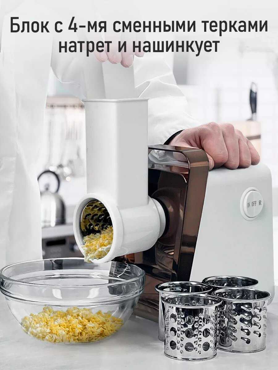 Согласно отзывам, оптимально справляется с луком и варёными овощами для котлет. Однако при попытке переработать сырые овощи крупными кусками могут возникать трудности с подачей. Насадка-шинковка работает, но требует предварительной нарезки продуктов на узкие ломтики. -