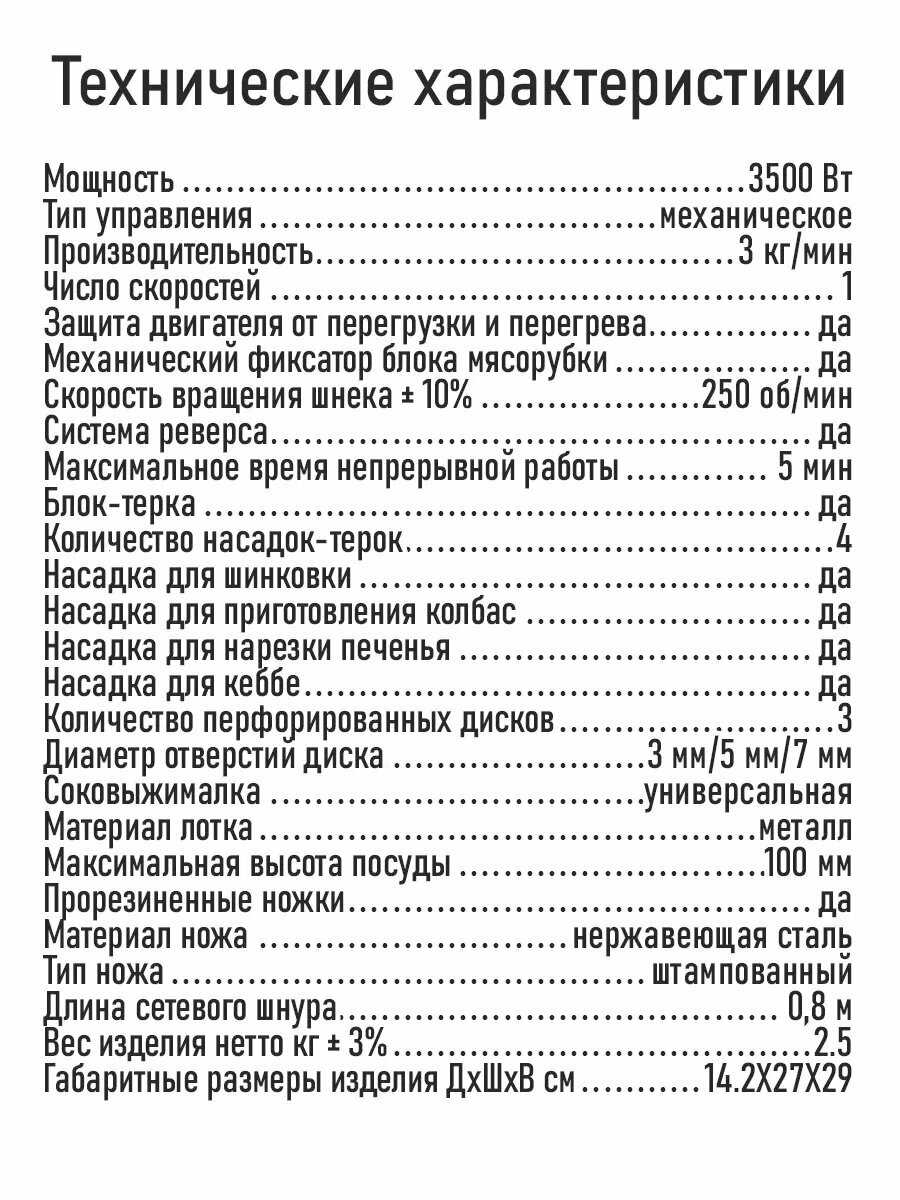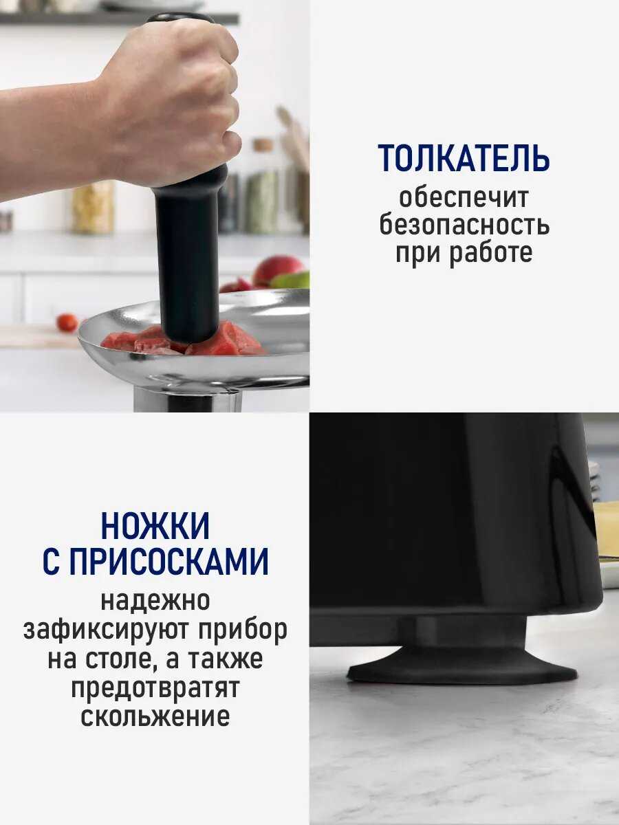 - Требует перерывов при обработке более 1.5-2 кг мяса подряд.