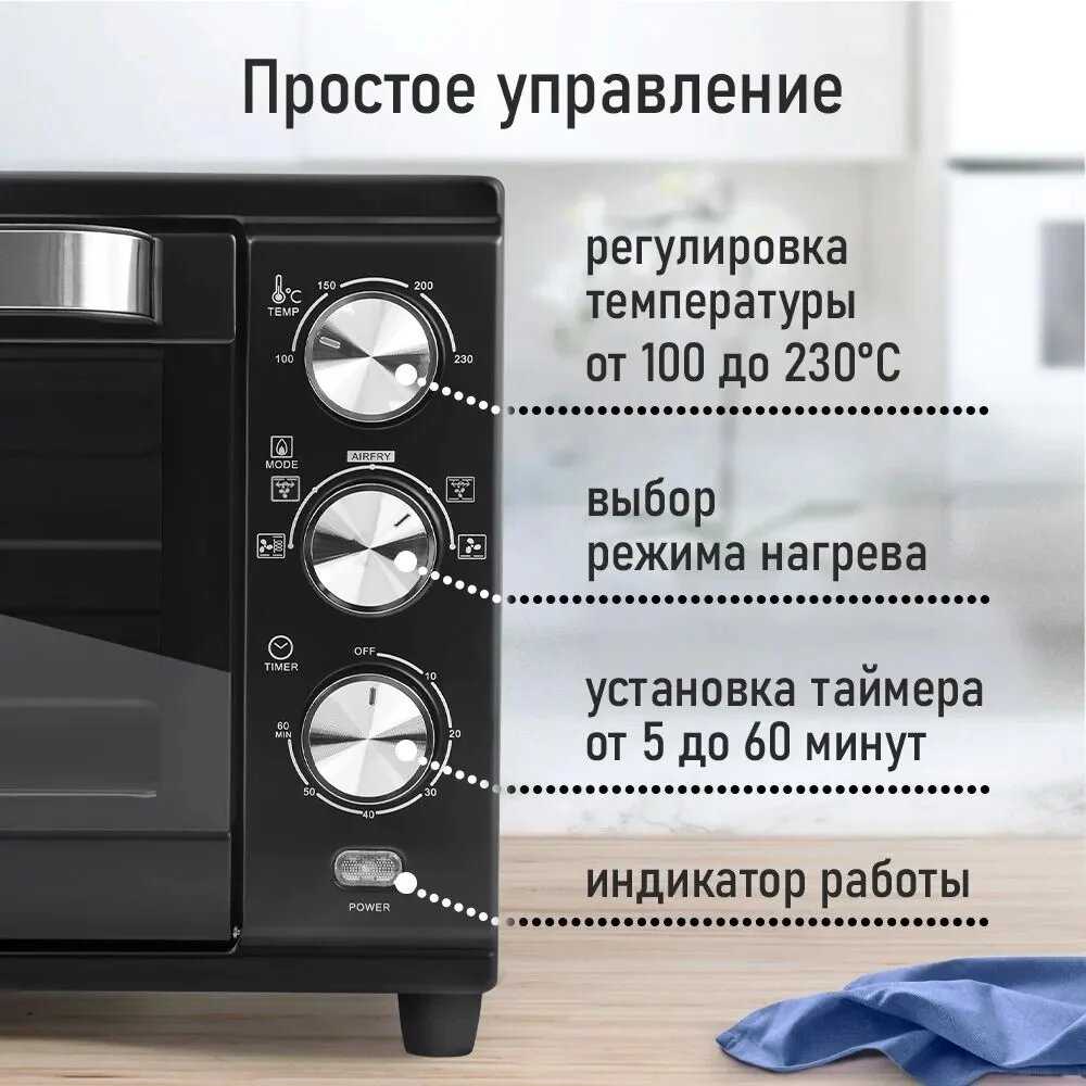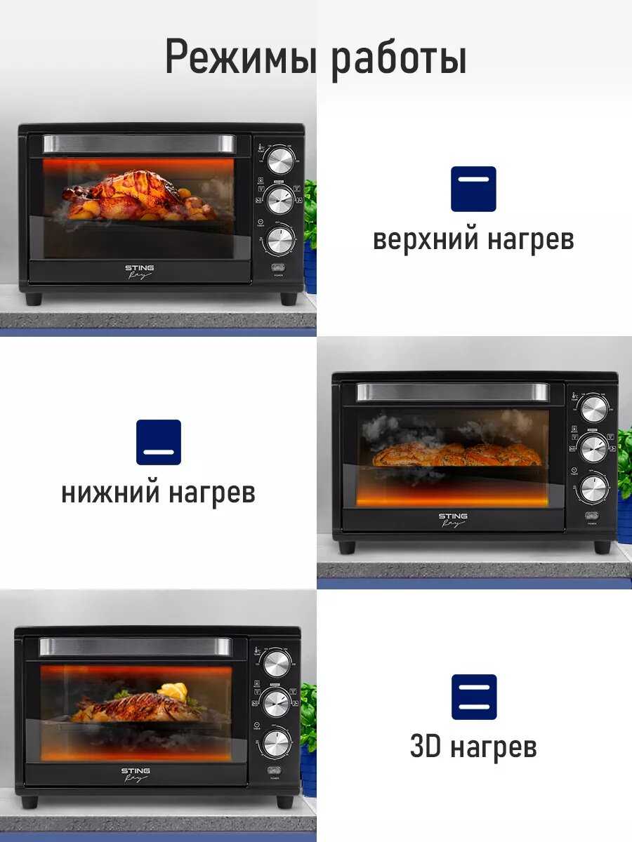 | Режимы работы : | верхний нагрев, конвекция, нижний нагрев |