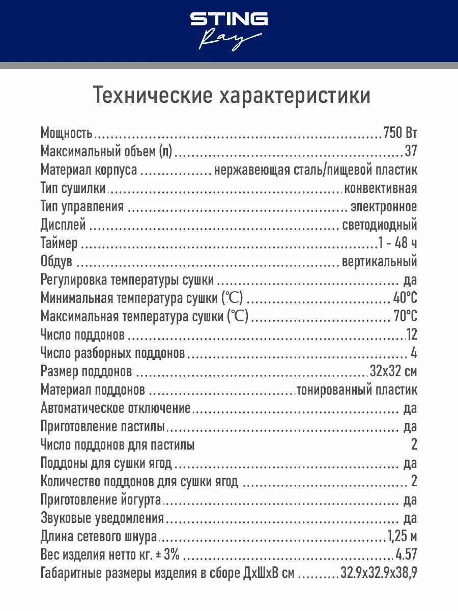 Обзор Sting Ray ST-FD723A (9 поддонов) - мнение пользователей*: