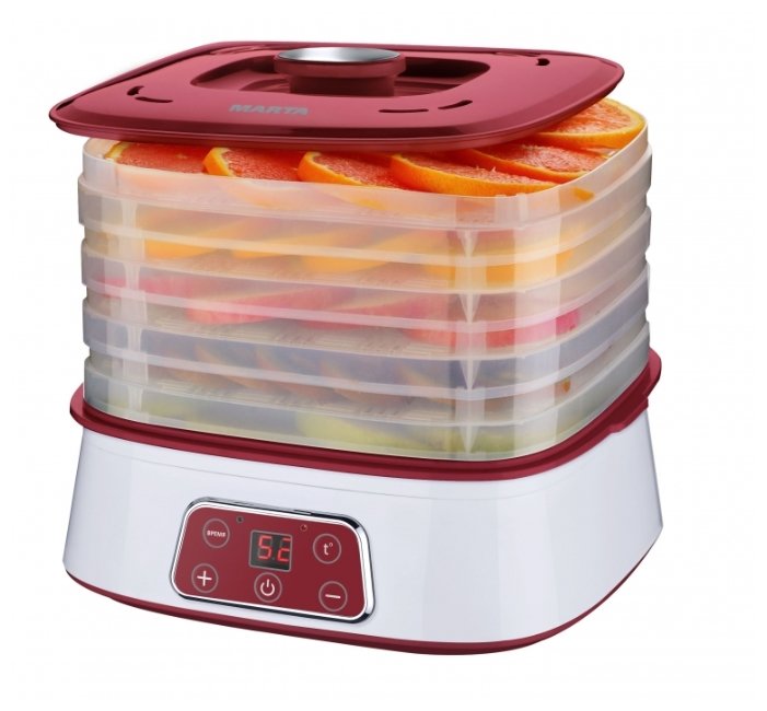 - Понятный дисплей и кнопки позволяют легко устанавливать время, минимизируя ошибки при сушке абрикосов или мандаринов до нужной консистенции.