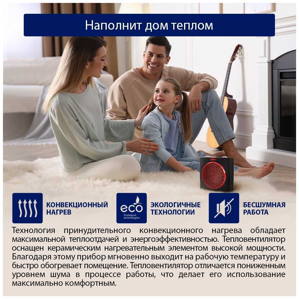 - Керамический элемент достигает рабочей температуры за 3-5 секунд после включения.