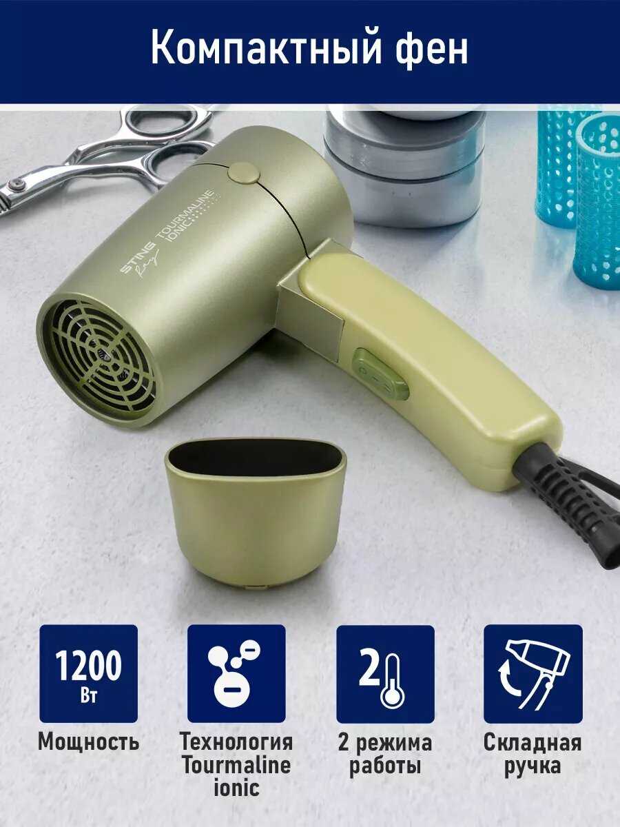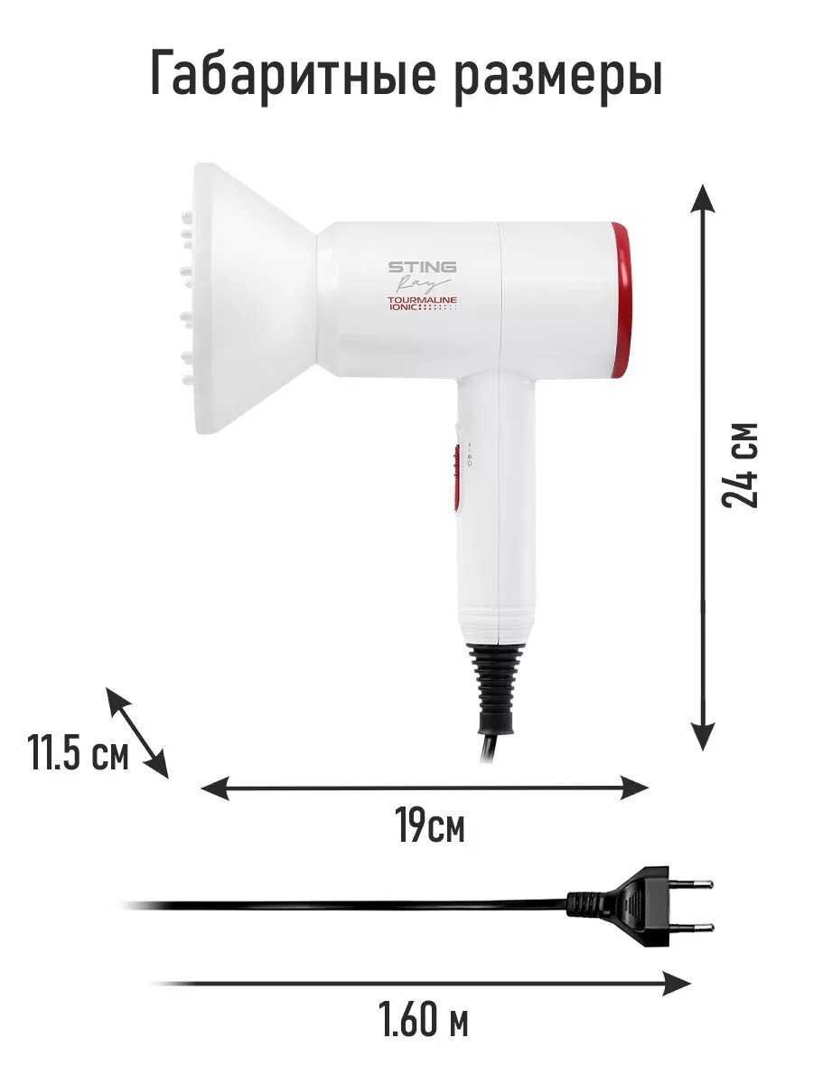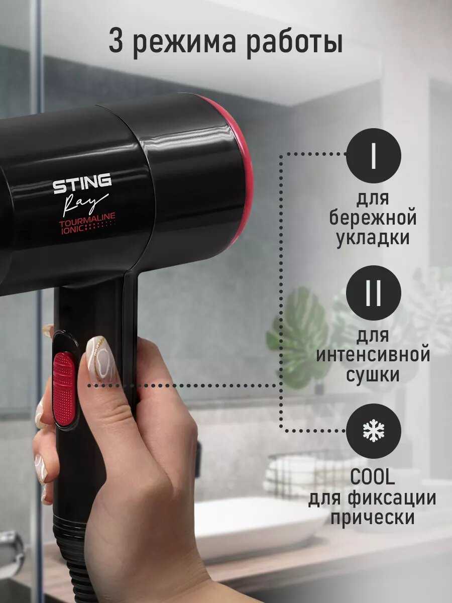 | Дополнительная информация : | Фен STINGRAY ST-HD804B, мощность 1200Вт, складной, темно-серый |