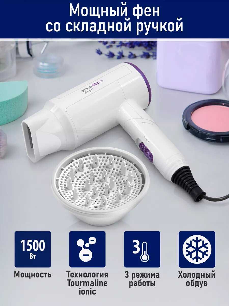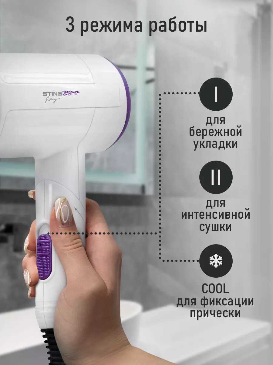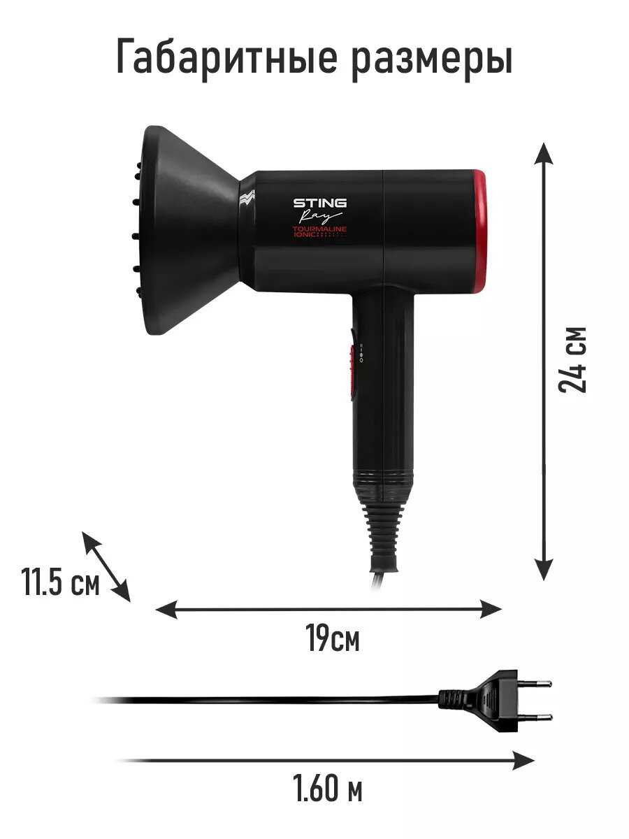 | Дополнительная информация : | Фен STINGRAY ST-HD804B, мощность 1200Вт, складной, темно-серый |