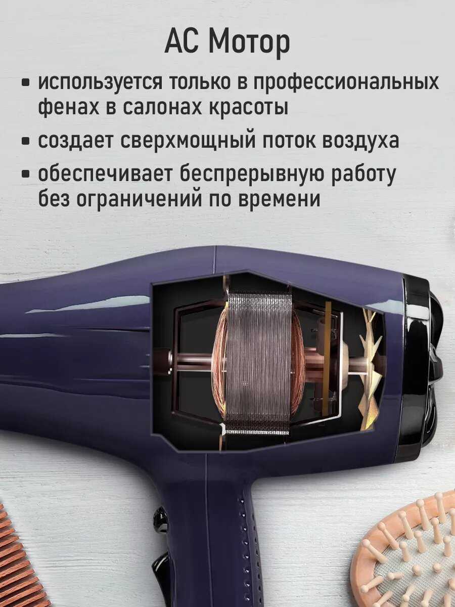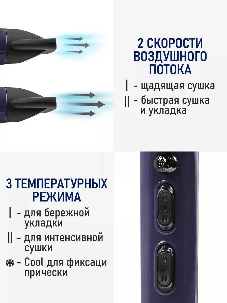 - Мощный поток воздуха позволяет быстро высушивать даже длинные волосы за считанные минуты, повышая удобство ежедневного использования.