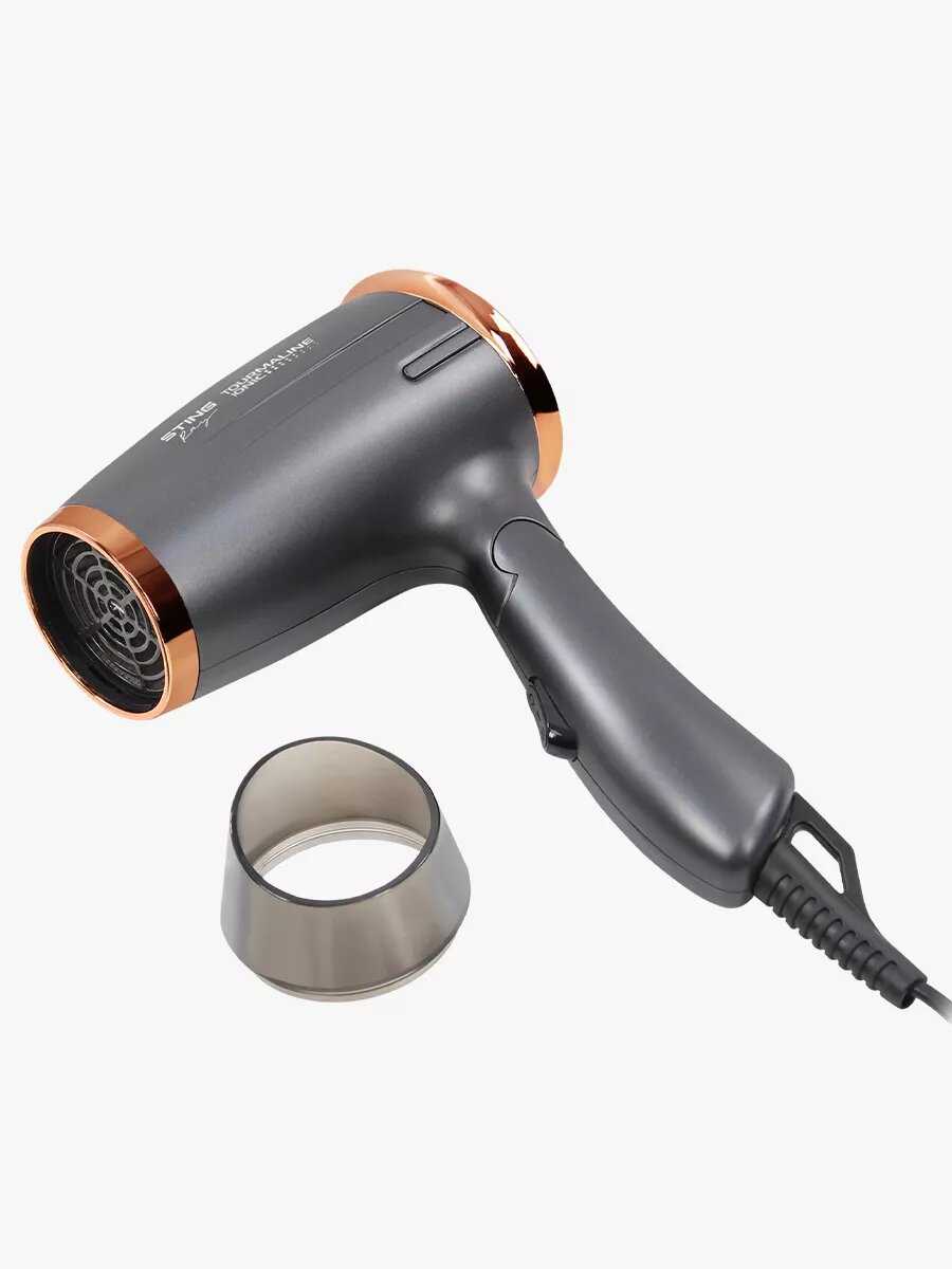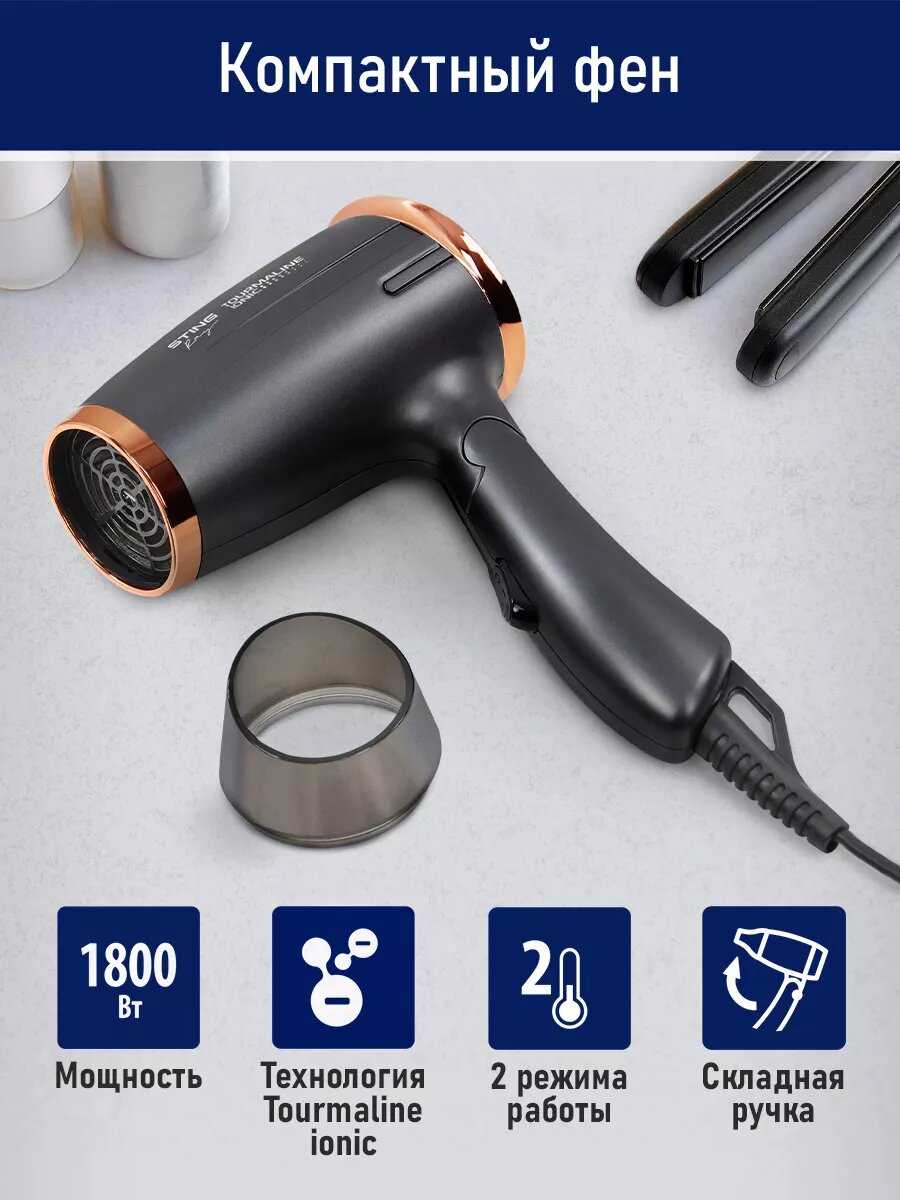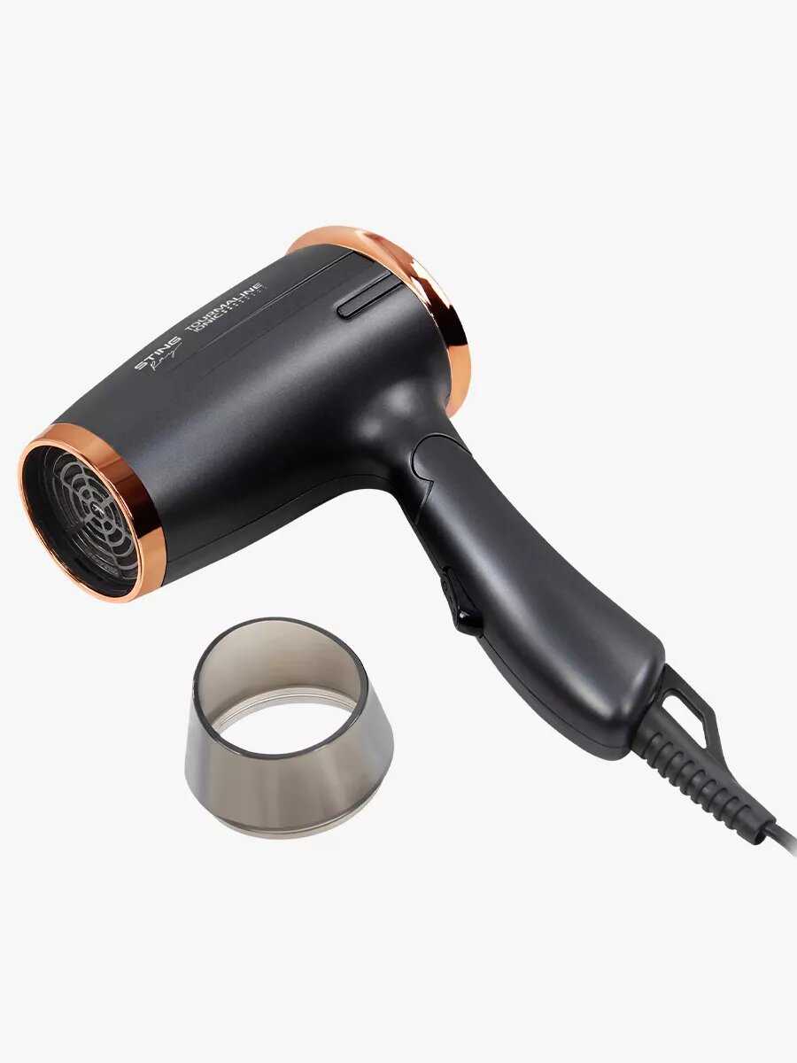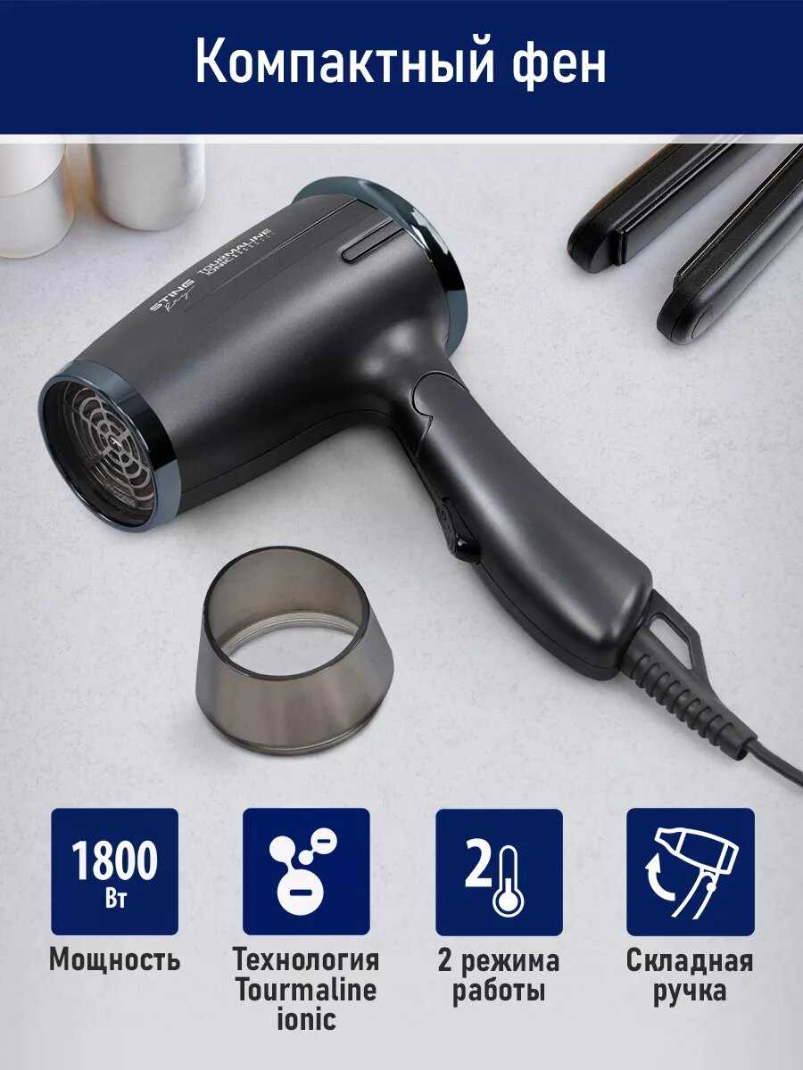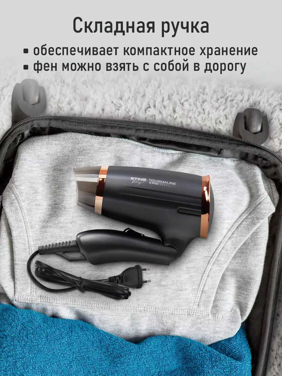 - Компактные размеры позволяют легко хранить фен в сумке для поездок, не занимая много места и обеспечивая портативность.