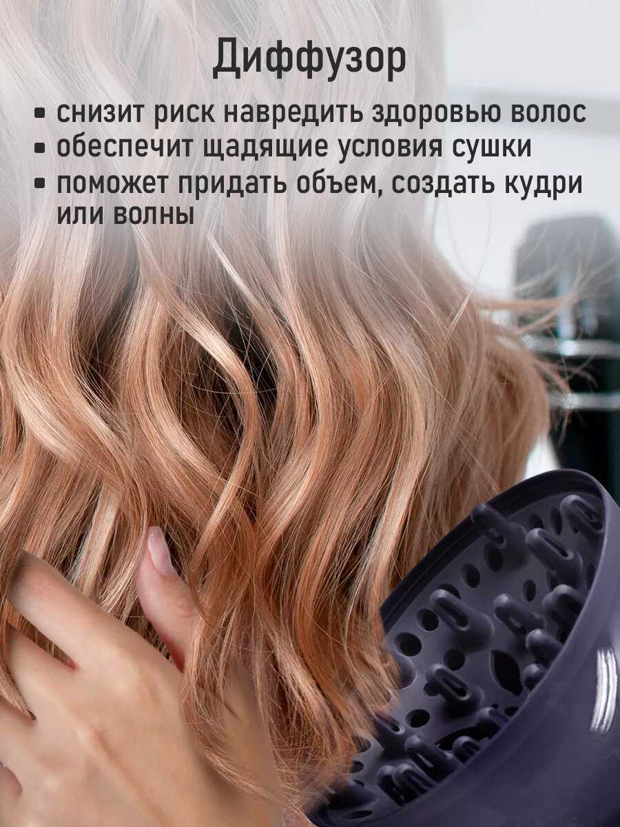 - Диффузор справляется с укладкой кудрявых волос, распределяя воздух равномерно и сохраняя объём, что улучшает результат стайлинга.