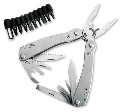 | Инструменты (функции) : | напильник, нож, отвертка, открывалка для бутылок, пассатижи, пила, сменные биты, шило / кернер |