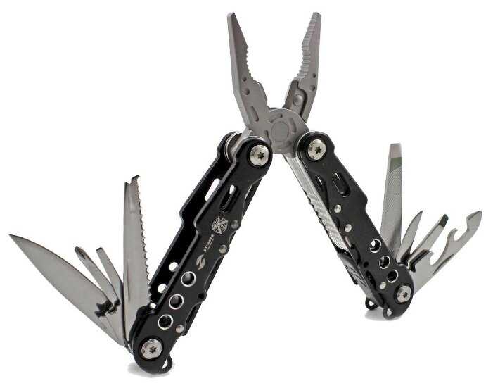| Инструменты (функции) : | консервный нож, напильник, нож, отвертка, открывалка для бутылок, пассатижи, пила, плоскогубцы |