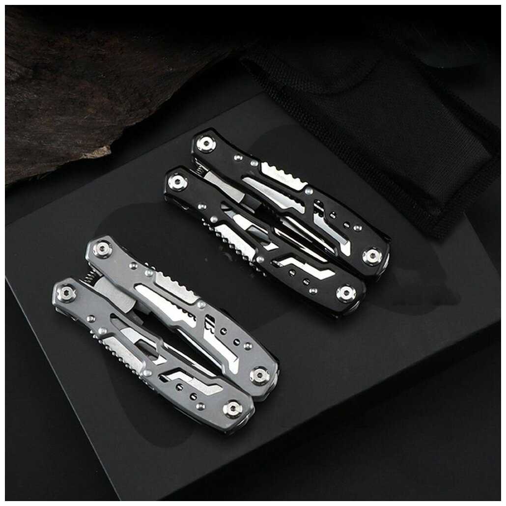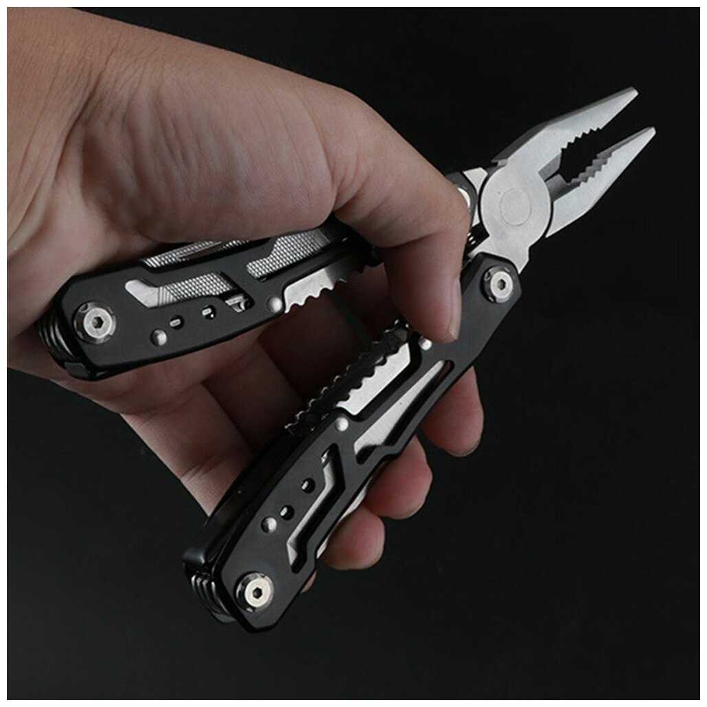 | Инструменты (функции) : | захват для гаек, консервный нож, кусачки, напильник, нож, острогубцы, отвертка, открывалка для бутылок, пассатижи, пила, пилка для ногтей, пинцет, плоскогубцы, шило / кернер, штопор |