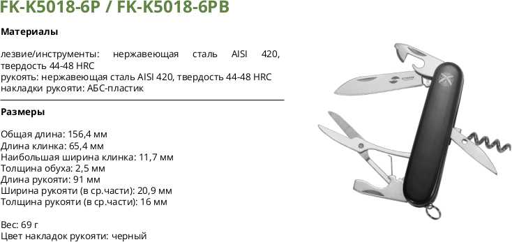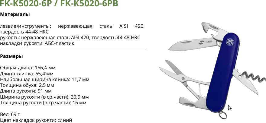 | Дополнительная информация : | лезвие и инструменты из нержавеющей стали 420 44-48HRC, рукоять из АБС-пластика |