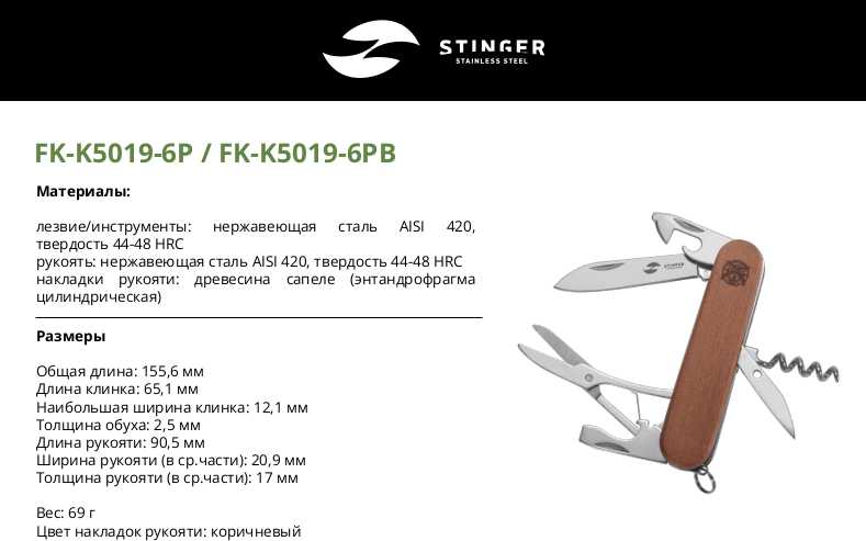 Характеристи STINGER Перочинный нож Stinger