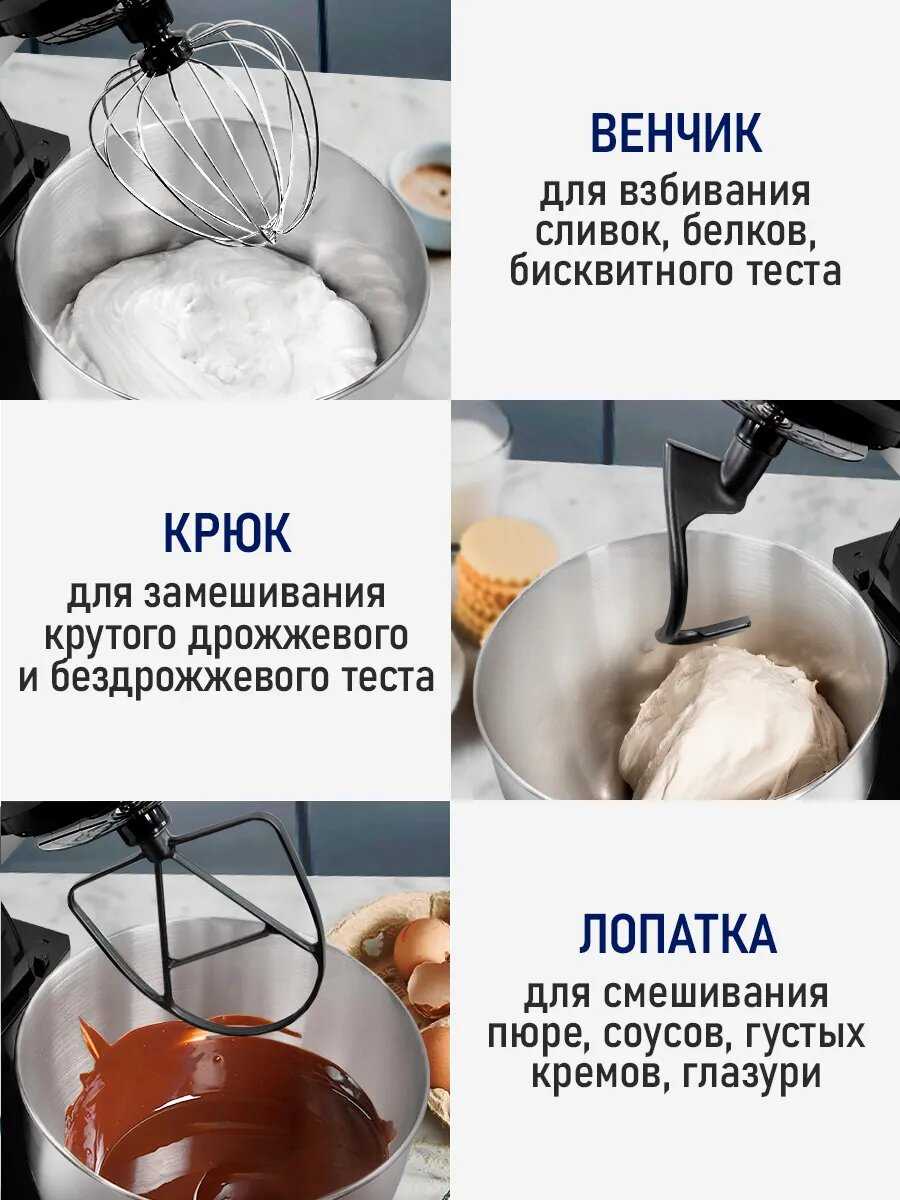 Реальная производительность и рабочие характеристики: Анализ пользовательского опыта выявляет противоречивые данные о мощности миксера. Многочисленные отзывы подтверждают его эффективность при работе с легкими задачами: взбивание яичных белков до устойчивых пиков, приготовление жидкого теста для блинов и кремов происходит быстро и качественно. Однако при переходе к плотным субстанциям, таким как тесто для хлеба или пиццы, наблюдается явная нехватка мощности; устройство начинает перегреваться и может отключаться, несмотря на наличие защиты от перегрева. Пользователи отмечают необходимость соблюдения рабочего ритма 3-5 минут с перерывами для охлаждения при интенсивных нагрузках. Шумовые характеристики оцениваются как хорошие – миксер работает тихо, без сильной вибрации. Конструкция корпуса обеспечивает отсутствие сильного нагрева за указанные промежутки работы, что подтверждается тестами на замес теста для шарлотки в течение 3-5 минут. Фактическая мощность, судя по надписям на самом корпусе, может отличаться от заявленной в спецификациях, что вызывает вопросы у части пользователей.