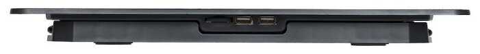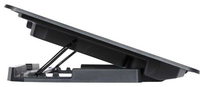 Купил, не поступился на счёт цены. Из достоинств: есть слоты USB сзади, туда втыкал клавиатуру, т к слотов на ноутбуке не хватило. Есть регулировка скорости вентилятора(но она там бесполезна). Тихая.