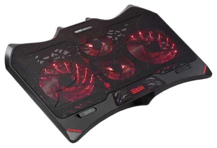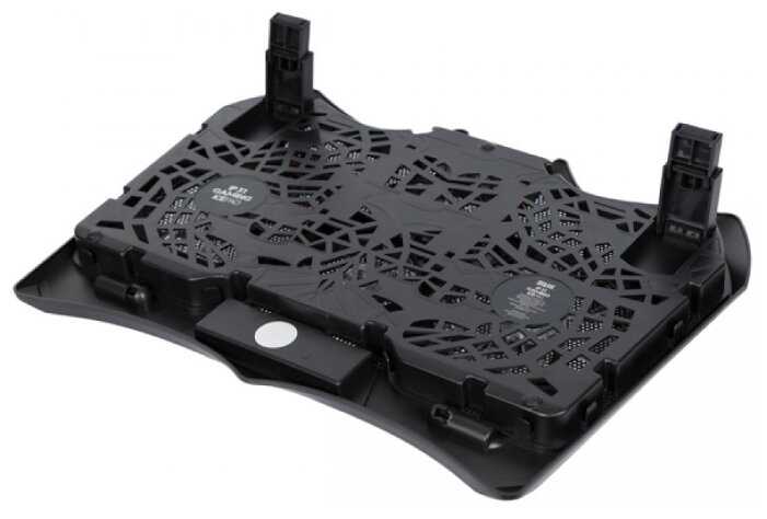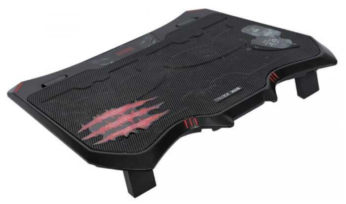 - + Подходит для 15 и 17 дюймовых ноутбуков. Есть возможность регулировать обороты вентиляторов (лишь для того, чтобы снизить потребление и нагрузку на USB порт). Есть подсветка красного цвета (при переносе в темном помещении подсветит путь.