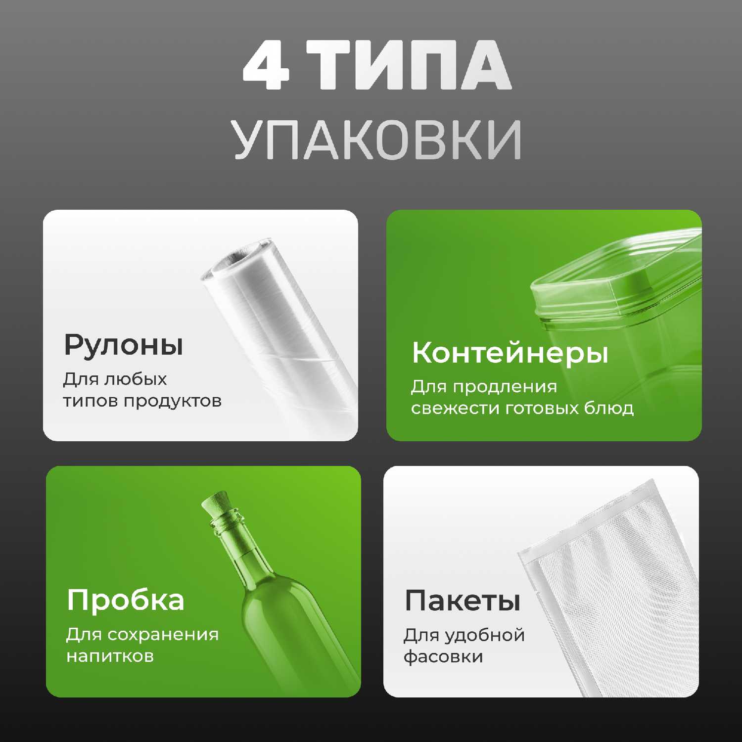После использования пакетов из стартового рулона пользователи докупают универсальные вакуумные пакеты, которые широко доступны на маркетплейсах. Для работы с сыпучими продуктами и жидкостями можно приобрести специальные многоразовые контейнеры с клапанами. Трубка из комплекта позволяет работать с такими контейнерами и специальными пакетами для многократного использования. -