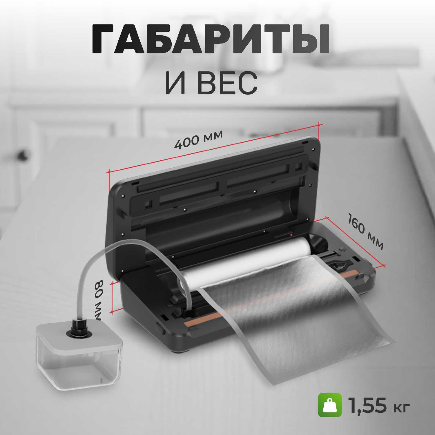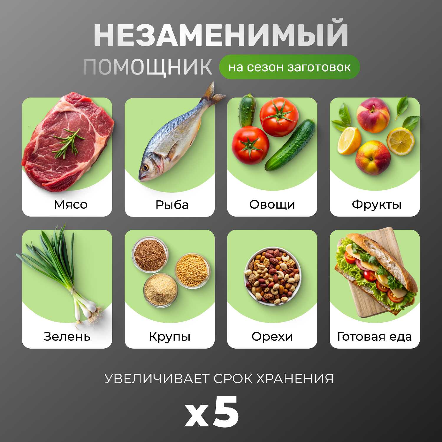 Основное преимущество — значительная экономия места в холодильнике и морозильной камере за счет уменьшения объема упакованных продуктов. Устройство помогает сократить пищевые отходы, продлевая свежесть продуктов и предотвращая их преждевременную порчу. Регулярное использование прибора упрощает организацию хранения и систематизацию продуктов на кухне.