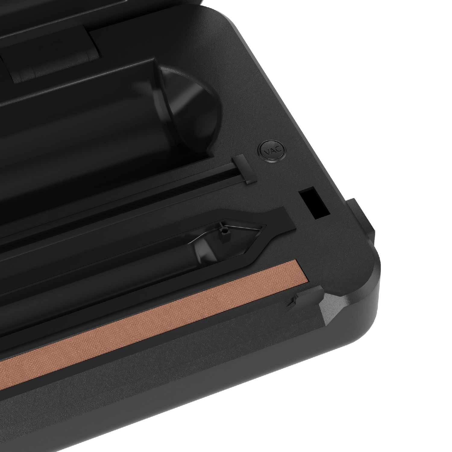 Вместе с устройством поставляется рулон вакуумных пакетов, которого хватает для первичного тестирования и знакомства с функциями. Также в комплекте имеется встроенный резак для отрезания пакетов нужной длины и трубка для работы с многоразовыми контейнерами или пакетами, оснащенными специальным клапаном. Производитель предусмотрел место для хранения рулона прямо в корпусе прибора, что очень удобно для постоянного использования. -