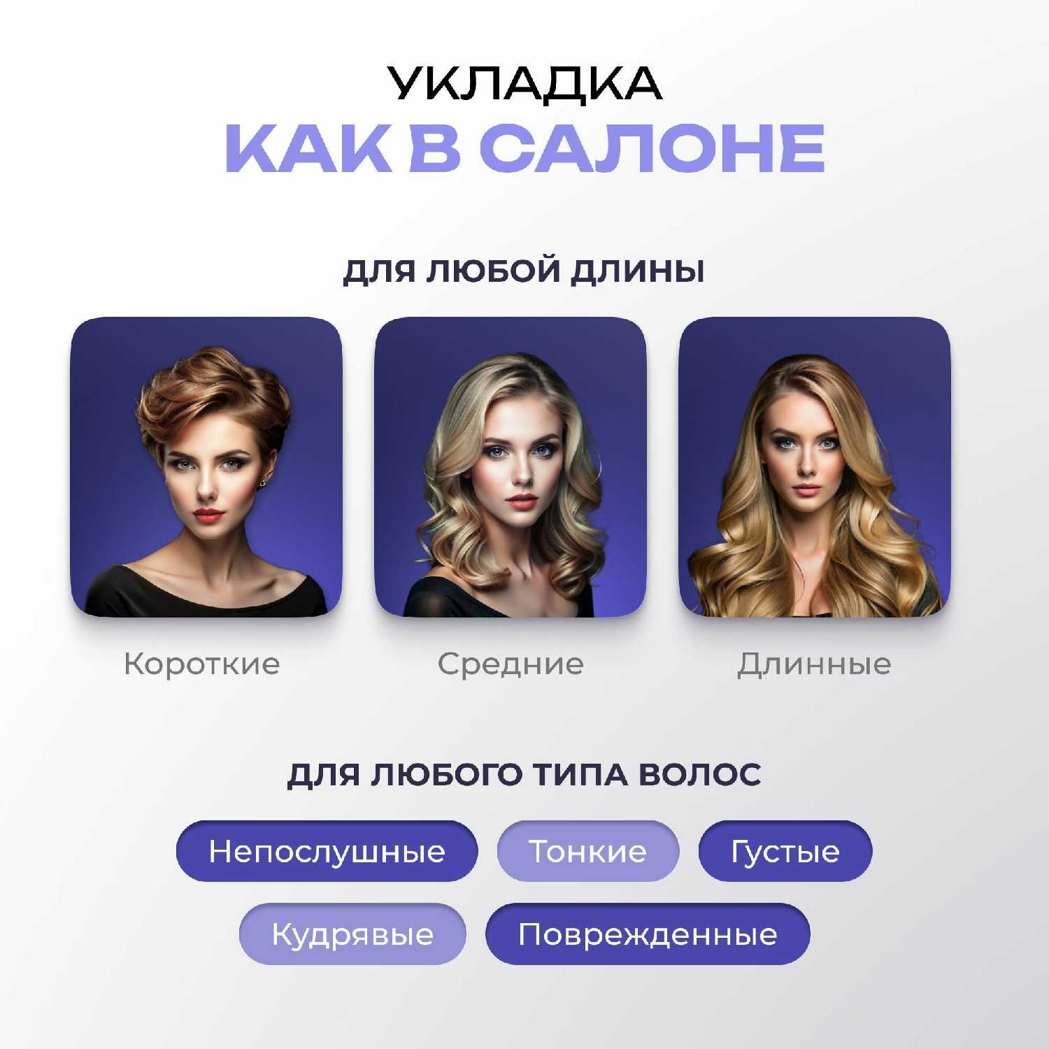 - Быстрая смена аксессуаров без усилий ускоряет процесс укладки.