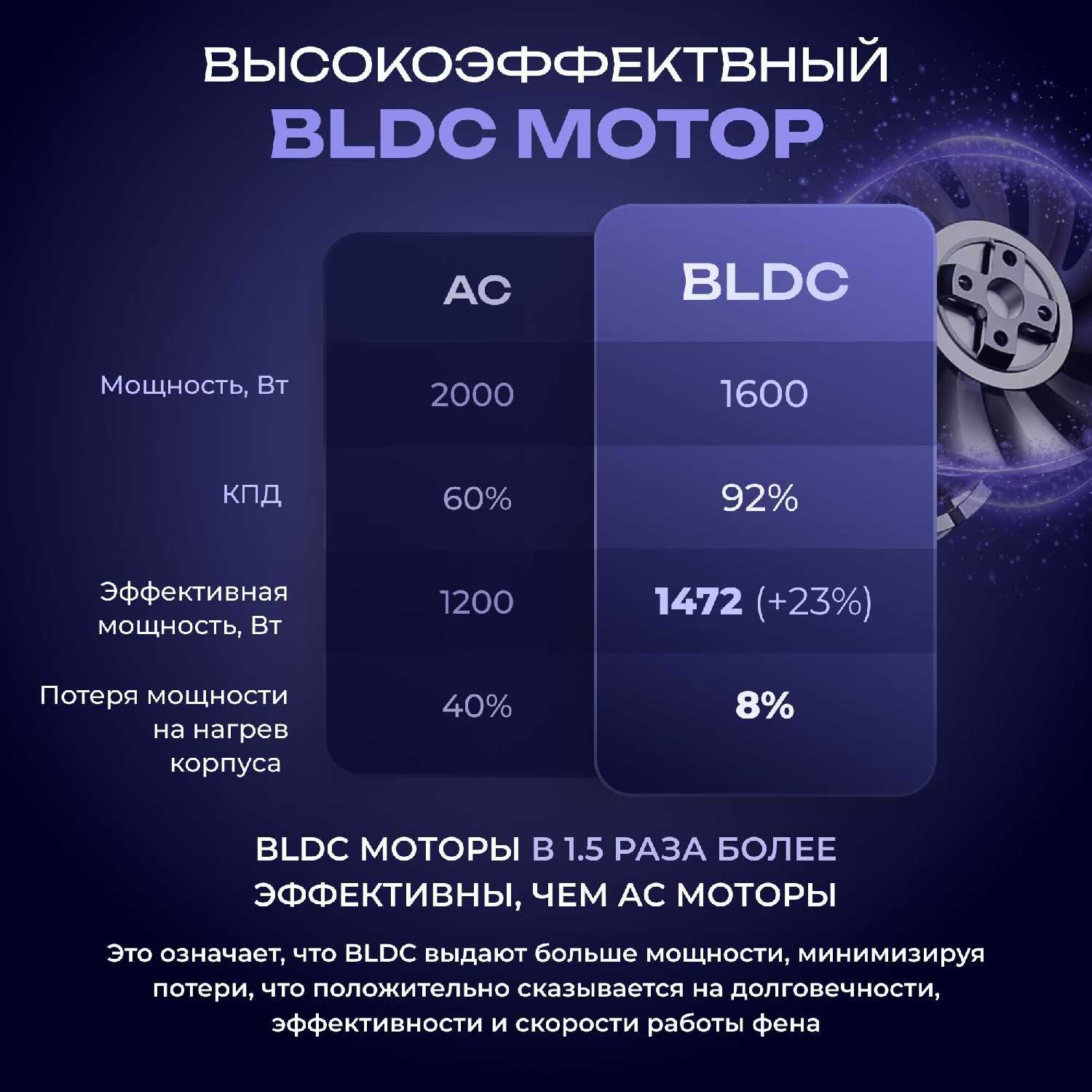 - Мощный поток воздуха обеспечивает быструю сушку даже густых длинных волос за 5-7 минут.