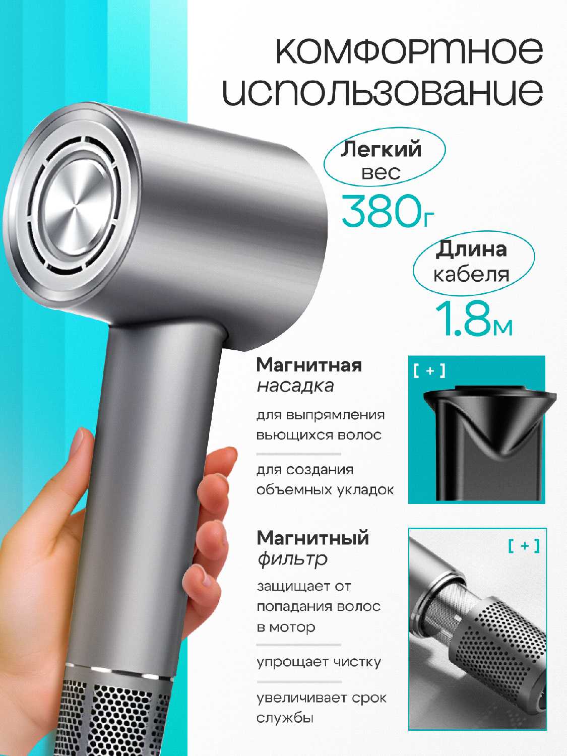 - + Шикарный фен, очень удобно лежит в руке, быстро сушит